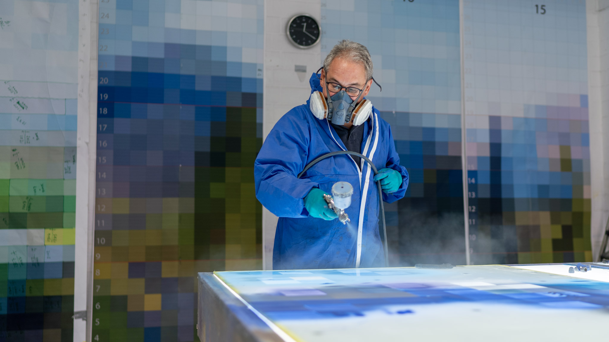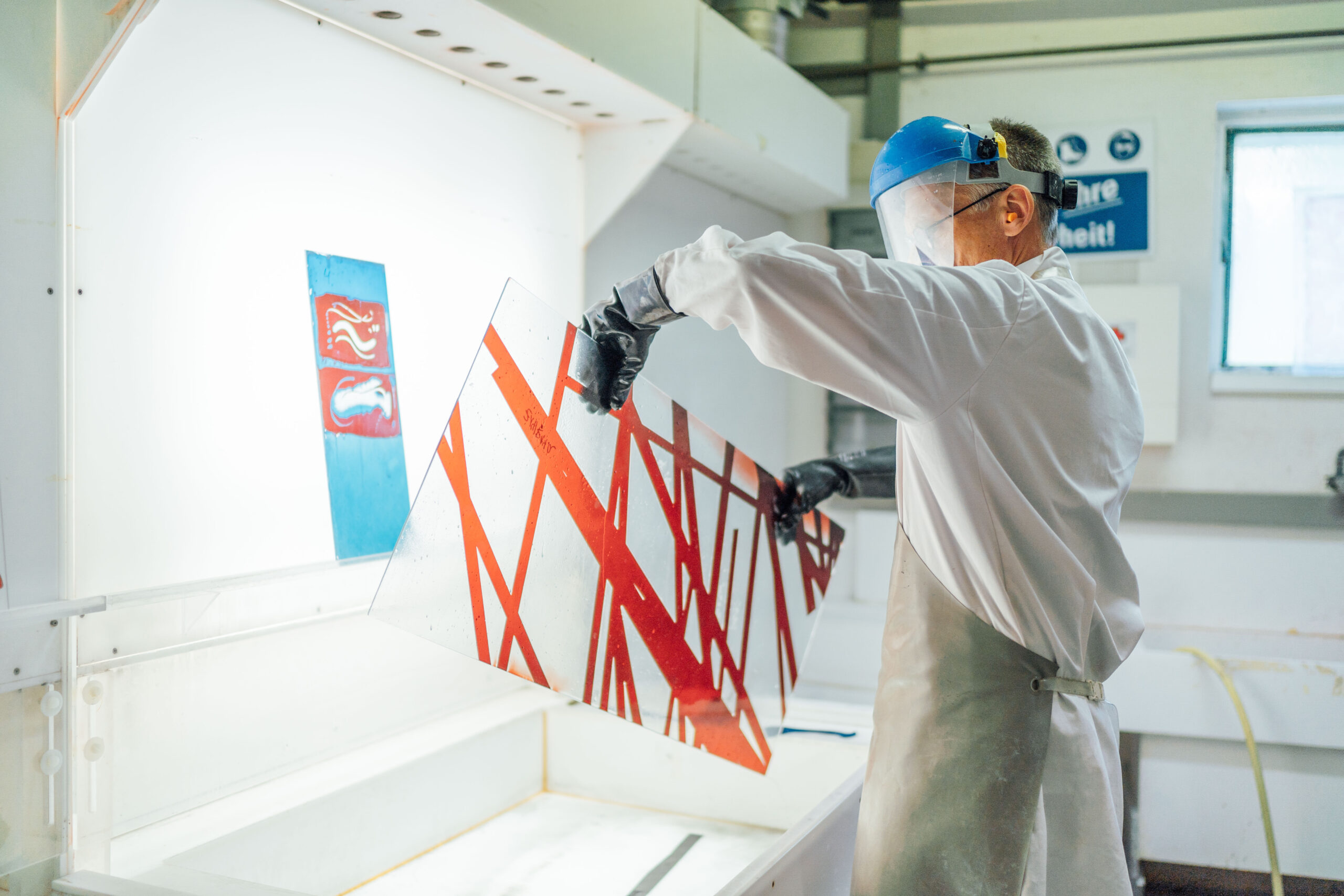 At the beginning of the event, Glasmalerei Studios was introduced and project examples of glass art in public spaces were given. After a discussion in which we also talked about the use of glass in three-dimensional sculptures, the various techniques of glass design were demonstrated, including airbrushing and etching.