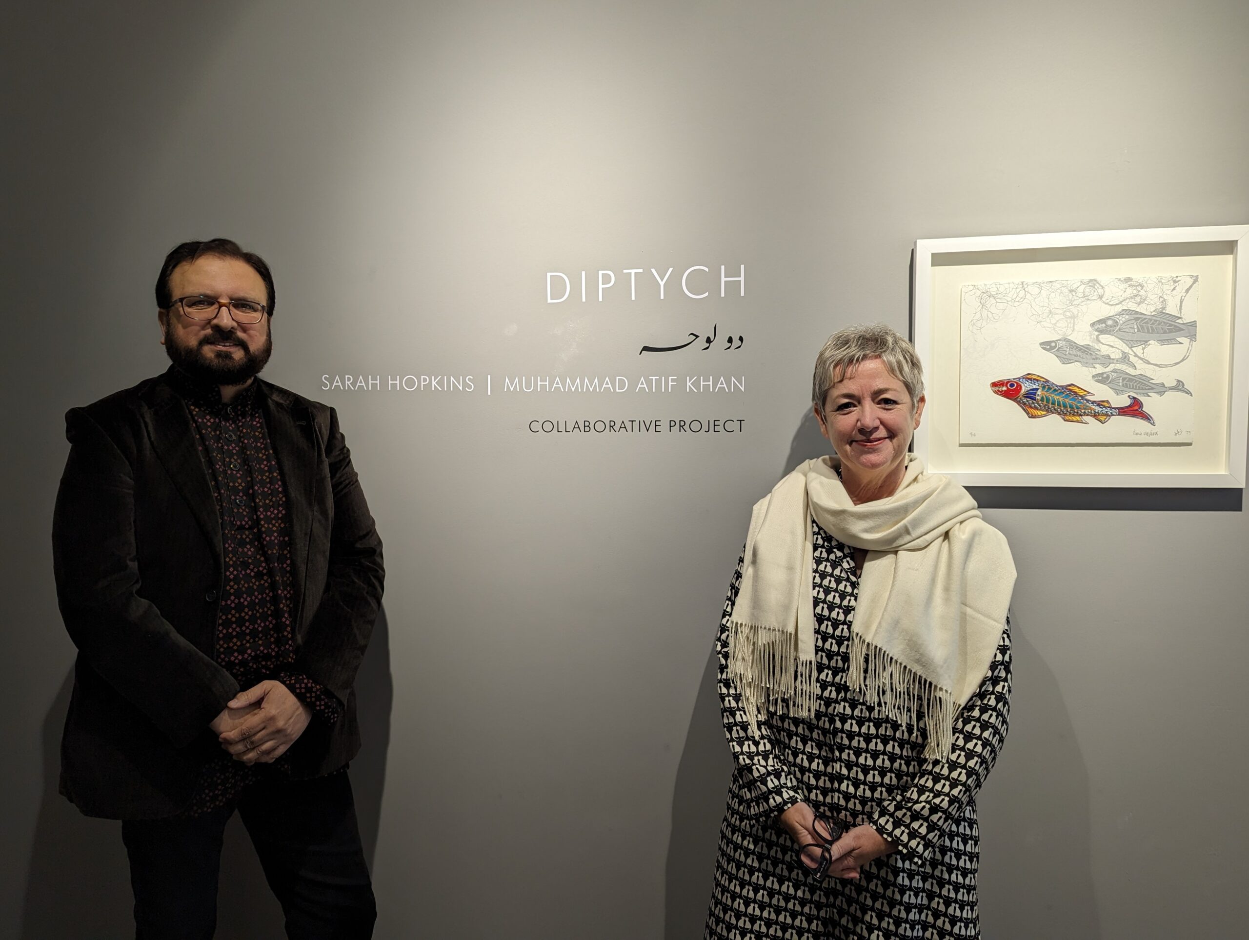 Over the period of a year, Sarah Hopkins from Swansea, Wales and Atif Khan from Lahore, Pakistan, worked together from their respective countries to produce a collection of 16 limited edition diptych prints.