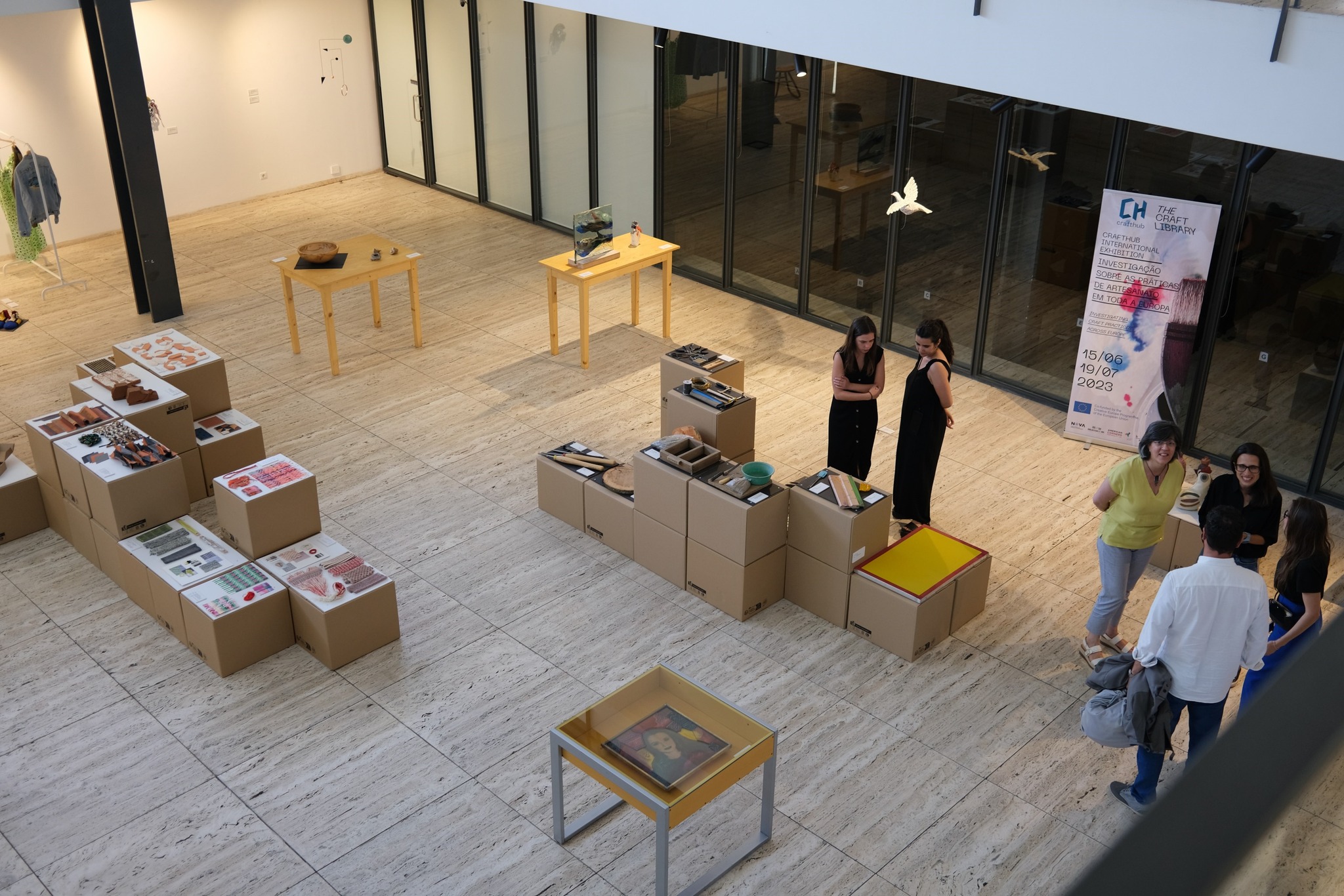 The venue for the Portugal edition, one of seven stops in multiple EU countries and the United Kingdom, was the beautiful and expansive exhibition space at the Faculty of Science and Technology. The location is the central exhibition hall of the FCT-NOVA Library. Part of an ongoing and rich cultural exhibition calendar, the locale is known across the university and beyond as a place to see visual art and craft of world-class quality. The open floor plan and visibility from 3 stories above gave visitors a multiple vantage point access to the work. Whether looking from above or walking and interacting up close with the work and exhibits, an awareness of the space, society, and an ever-expanding context for craft was clear to all having had the chance to attend. In fact, the opening not only attracted the attention and presence of the Dean of the Faculty, but even the Pro-Rector of Culture for Nova university was present for the public launch. Students, faculty members, makers, and the broader public were also all in attendance. As we can see through the photographs, this show was a very special moment.