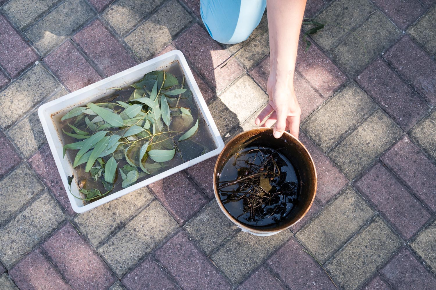 Beauty case with snap button closure.. Beauty cases are made from recycled fabric using the Eco Printing technique with elements I find during my outdoor walks.