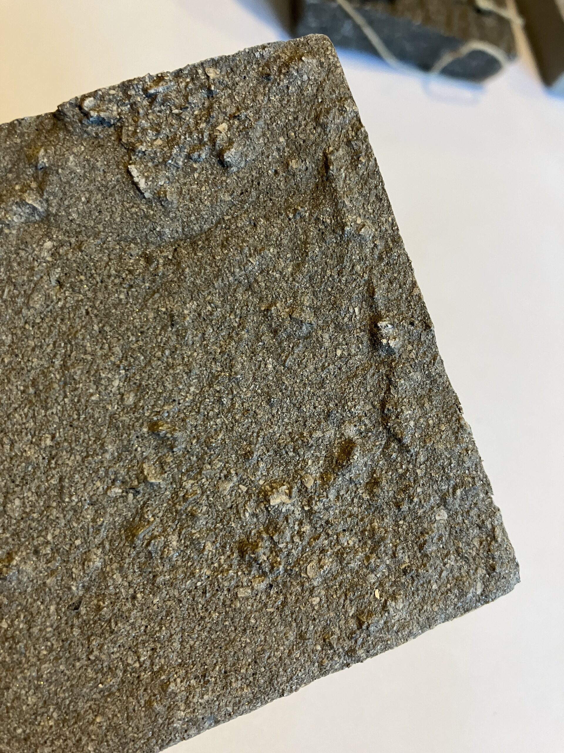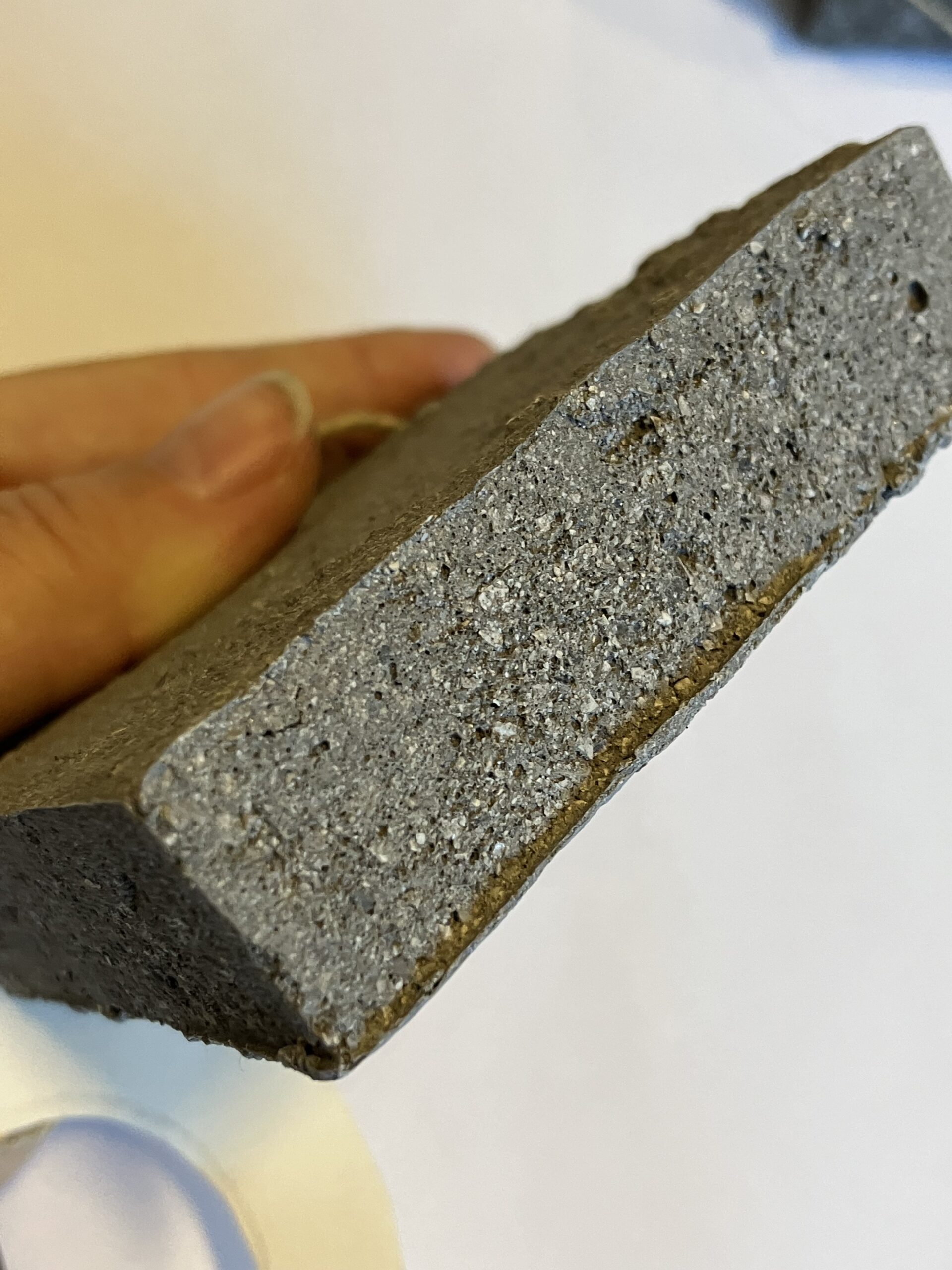 The material is made by grinding the sea shells finely, then heating the gelatine and mixing it with the crushed sea shells. In the liquid form the biomaterial can be casted in the desired shape.