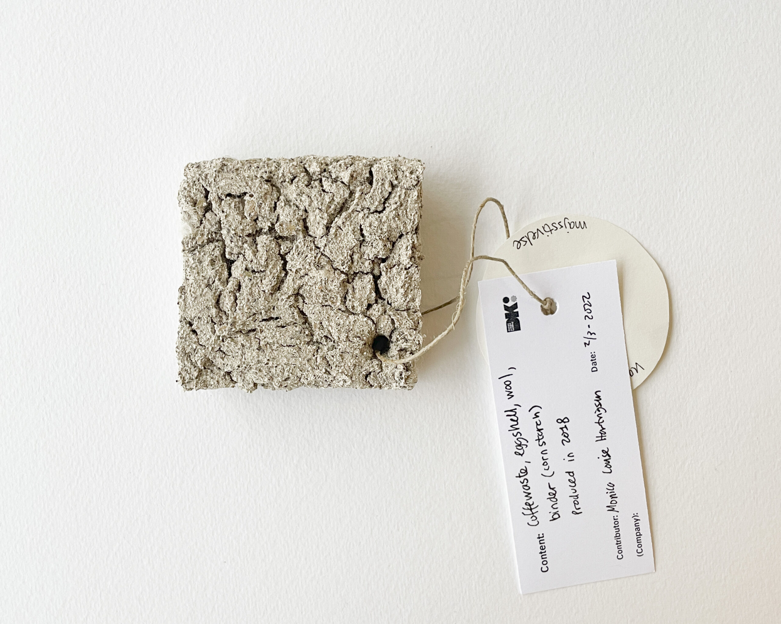 The material is made by grinding bio-material like shells finely, then mixing the shells with different natural binders. In the liquid form the bio-material can be casted in the desired shape.