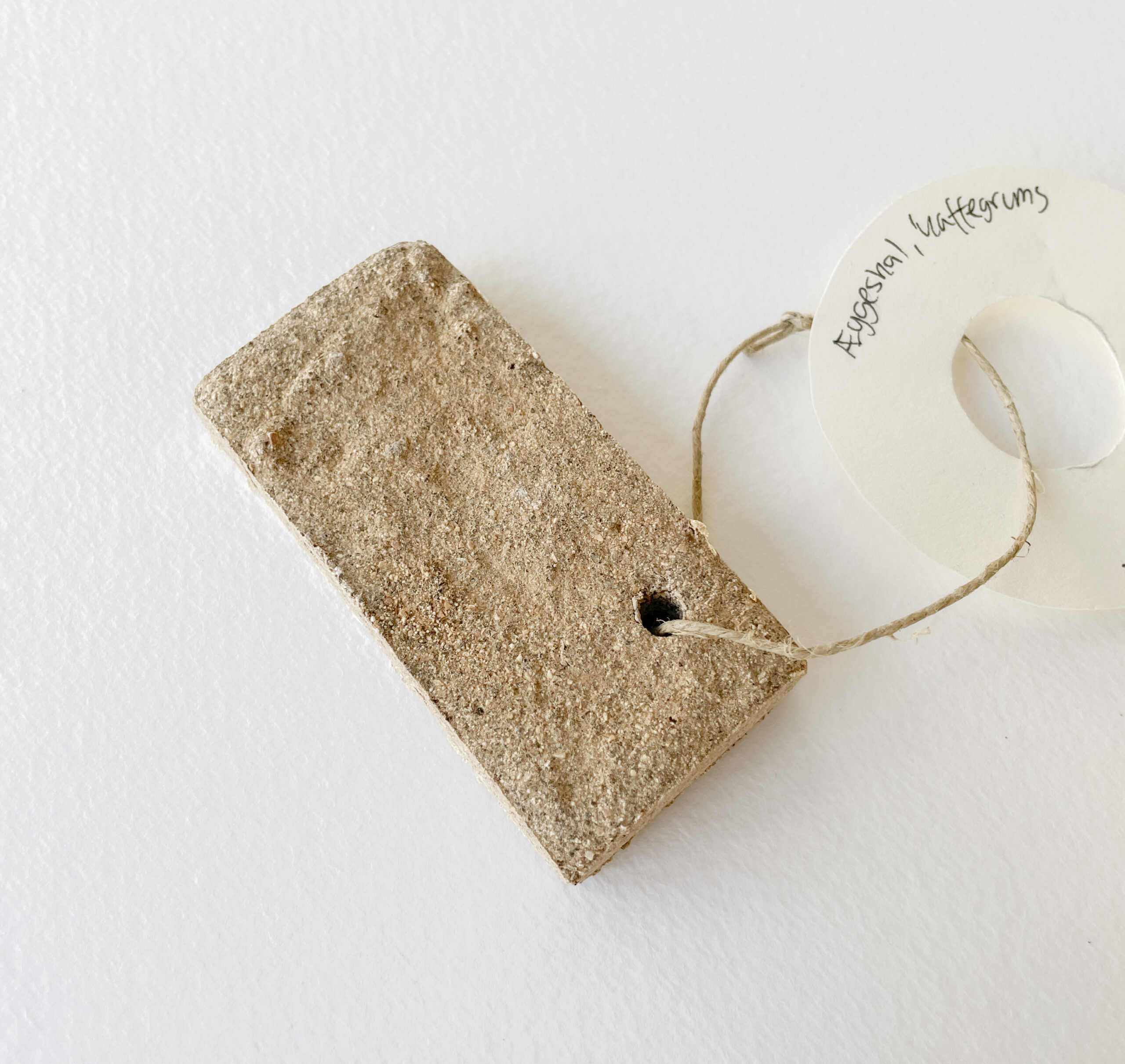 The material is made by grinding bio-material like shells finely, then mixing the shells with different natural binders. In the liquid form the bio-material can be casted in the desired shape.