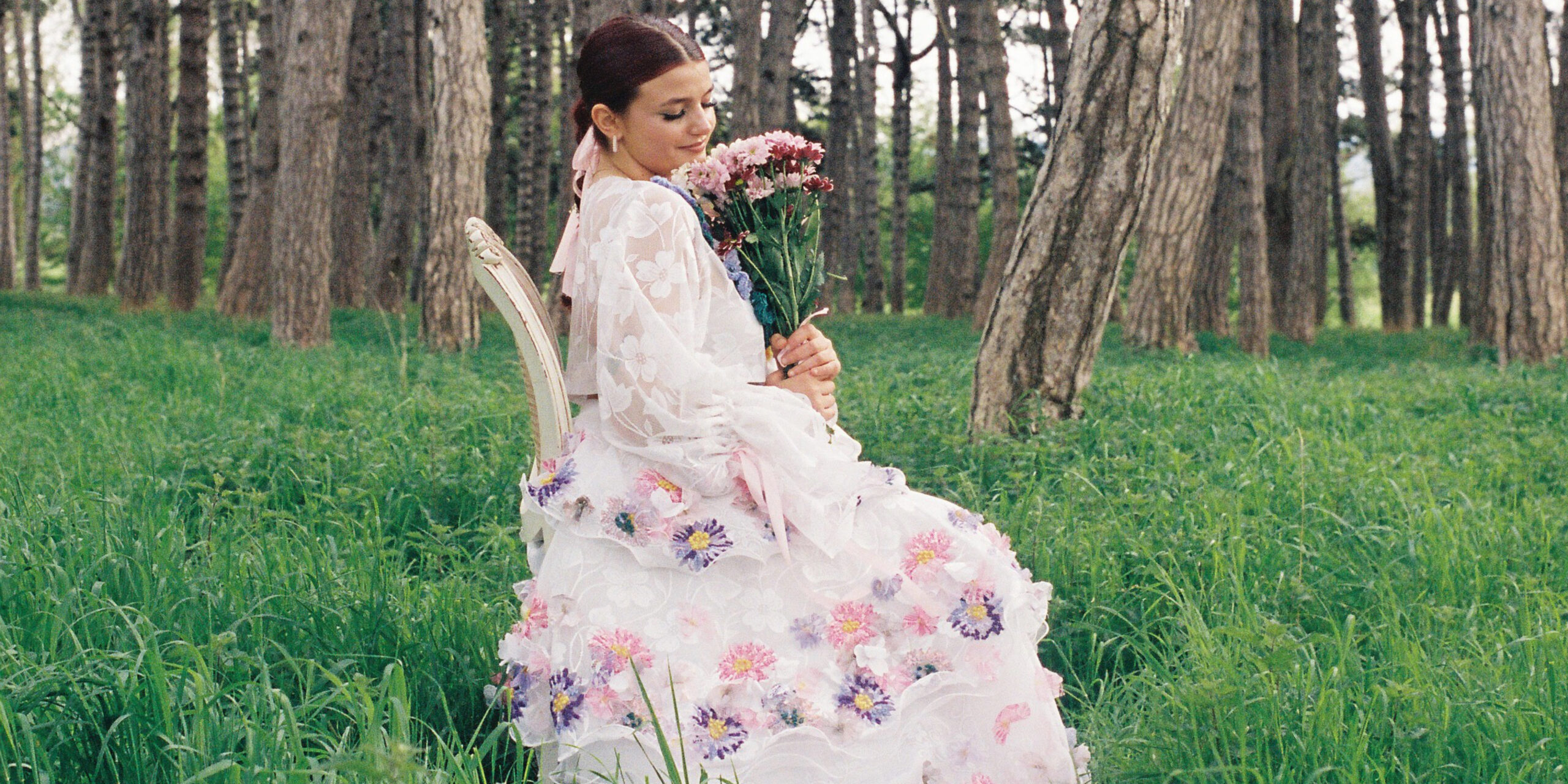 I looked at traditional Moldovan national dress for inspiration for the construction of the garment. I also looked at botanical forms for the construction, especially for the making of the circle skirt. The embroidery was the most important aspect of the garment in order to narrate the story I wanted to tell. I took the idea of using stylized floral symbols to create a motif and looked at flowers from my grandmother’s garden. I decided to do this as my grandmother’s garden has a special place in my mother’s heart, and from looking at my grandmother’s embroidery, it is obvious her inspiration came from her garden. I used a heat press to transfer the images of the flowers that I printed on Teflon paper onto the fabric. From then on, I used traditional embroidery techniques featured in Moldovan embroidery, such as cross stitch, to embroider on top of the heat-pressed motifs. I did this to incorporate a contemporary aspect into the garment. As this garment is a celebration of my identity and connection to my heritage, I crocheted flowers onto the bodice of the garment as an element to include my Irish heritage.