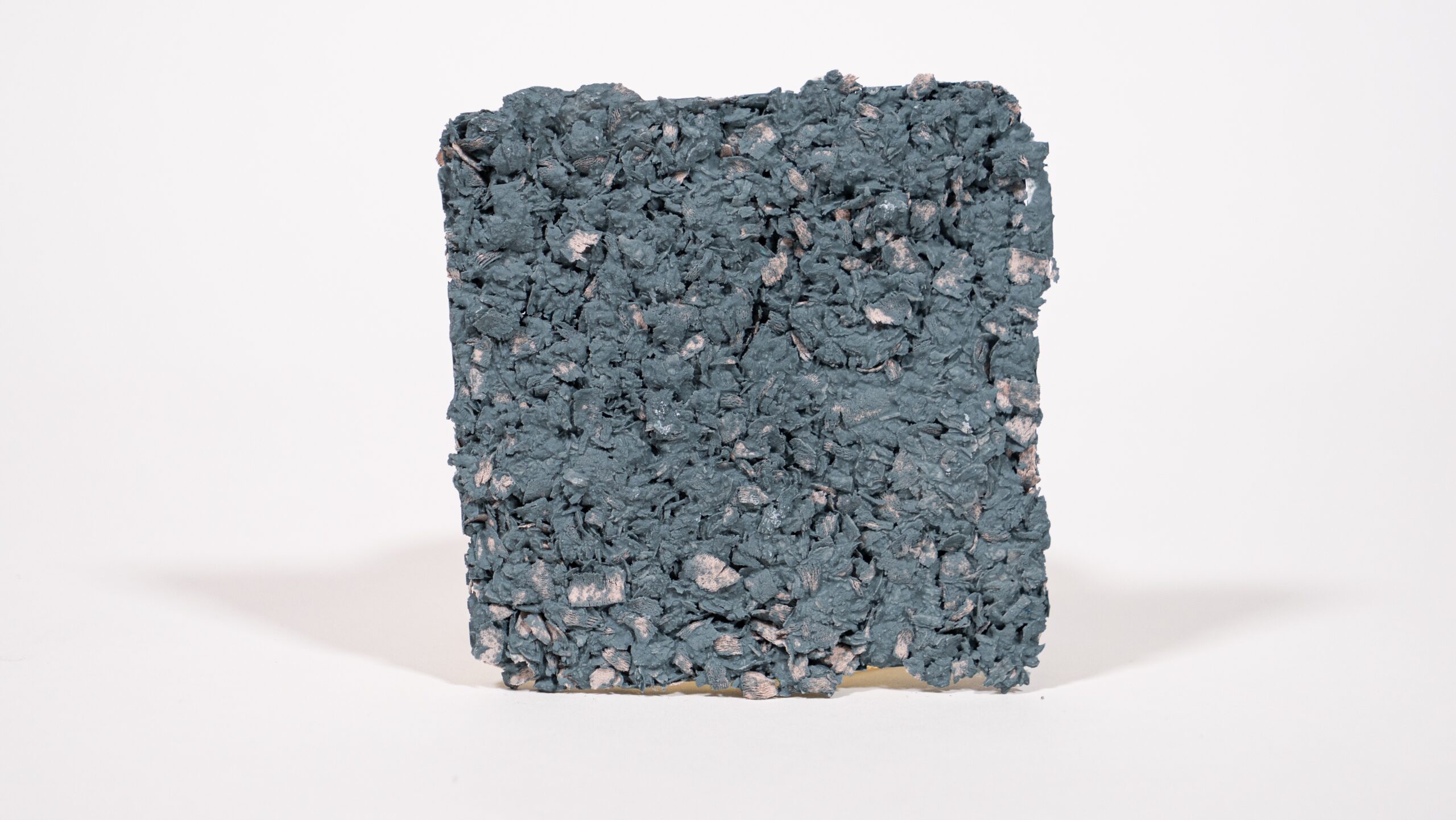 Jesmonite was combined with industrial swarf waste and pigments into silicone moulds.