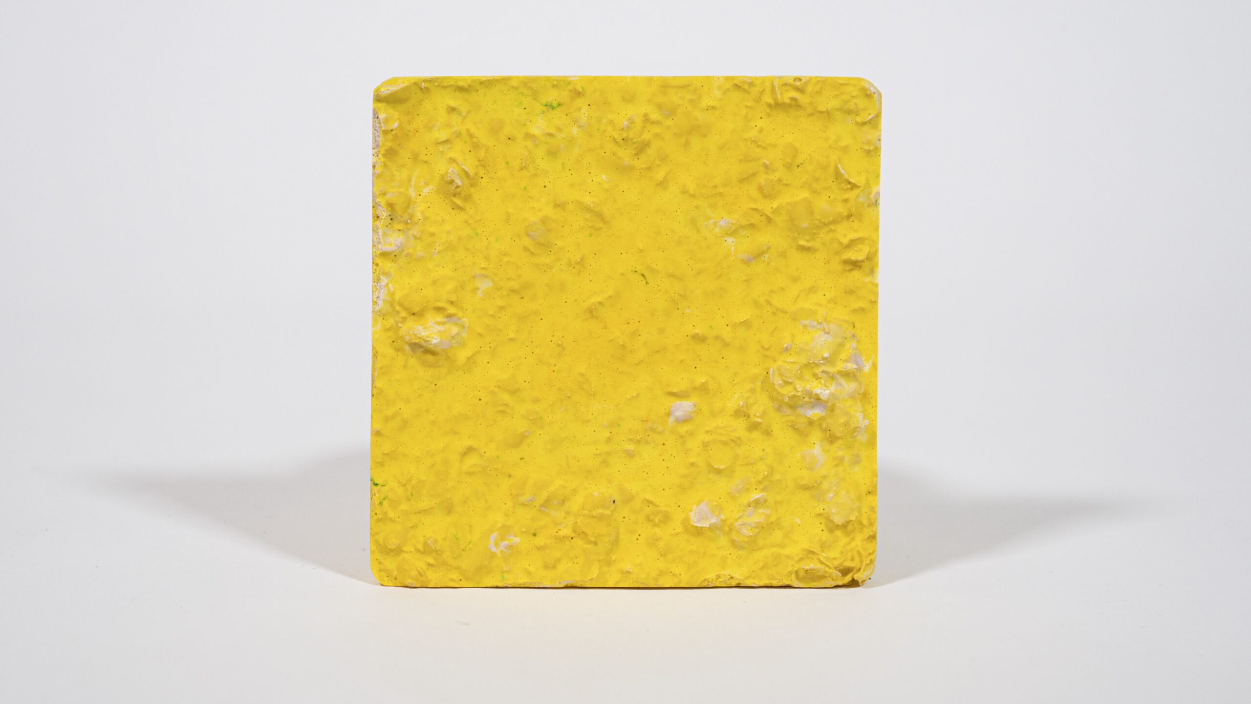 Jesmonite was combined with industrial swarf waste and pigments into silicone moulds.