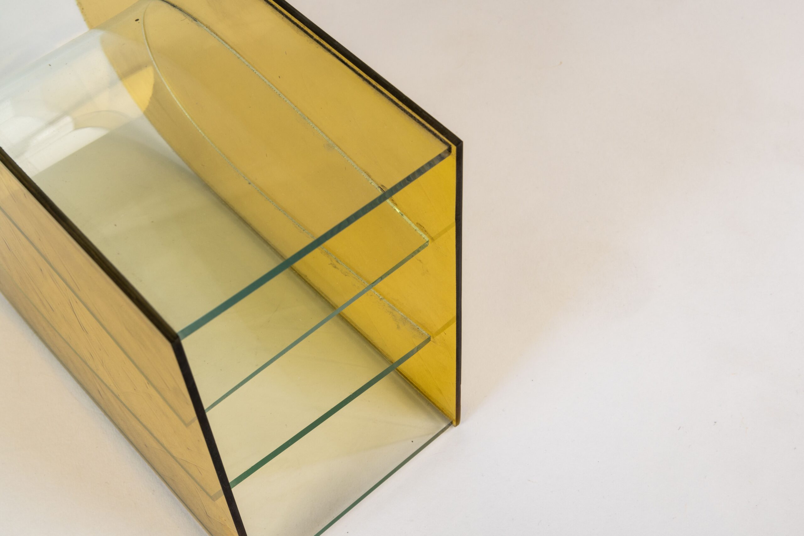 - The curves were formed by balancing the glass pieces over a former in the kiln. Then subjecting it to a long, slow firing between 580ºC – 610ºC.