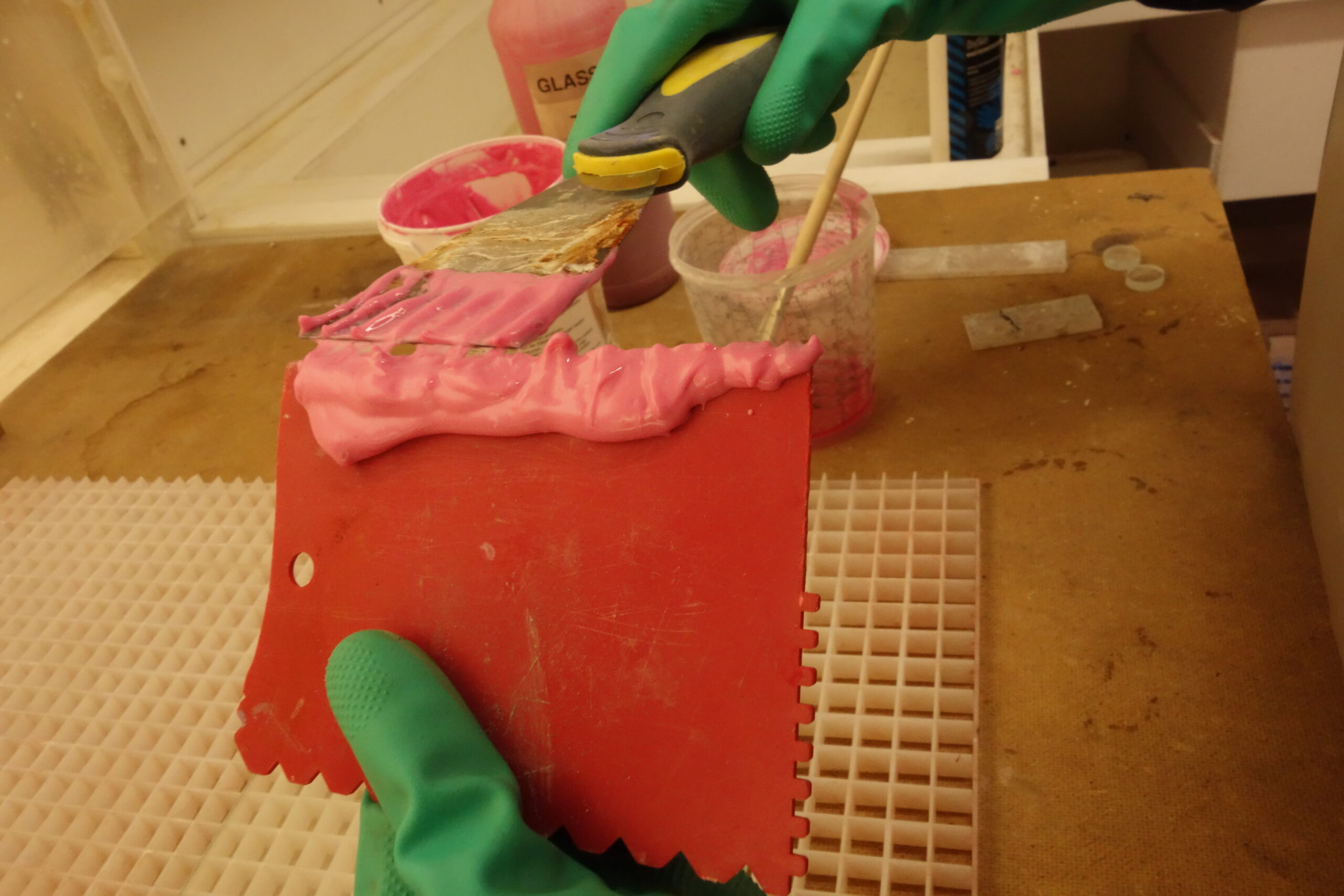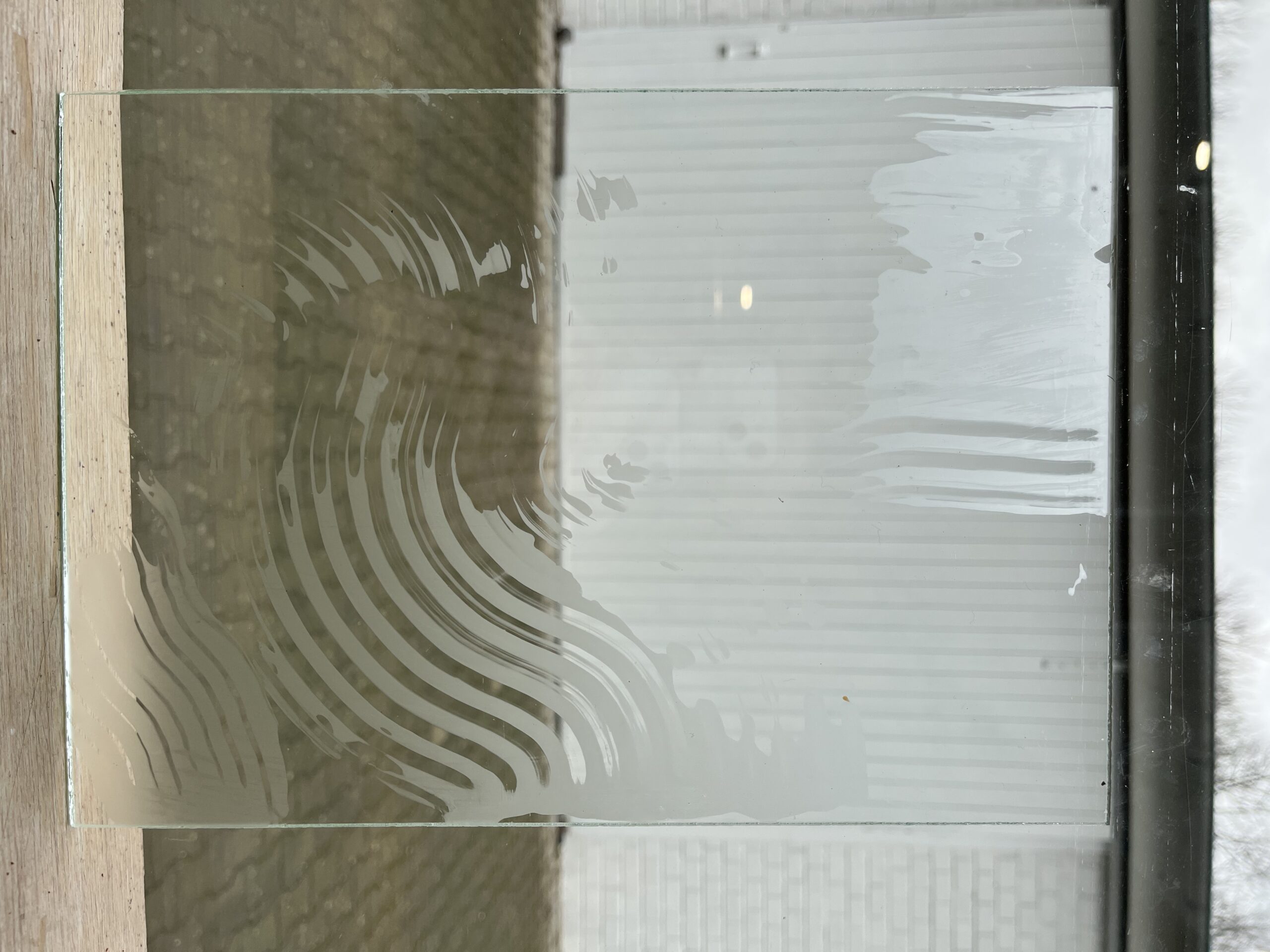The external side gets covered with an etching foil to act as a resist (to protect the glass from the etching paste).