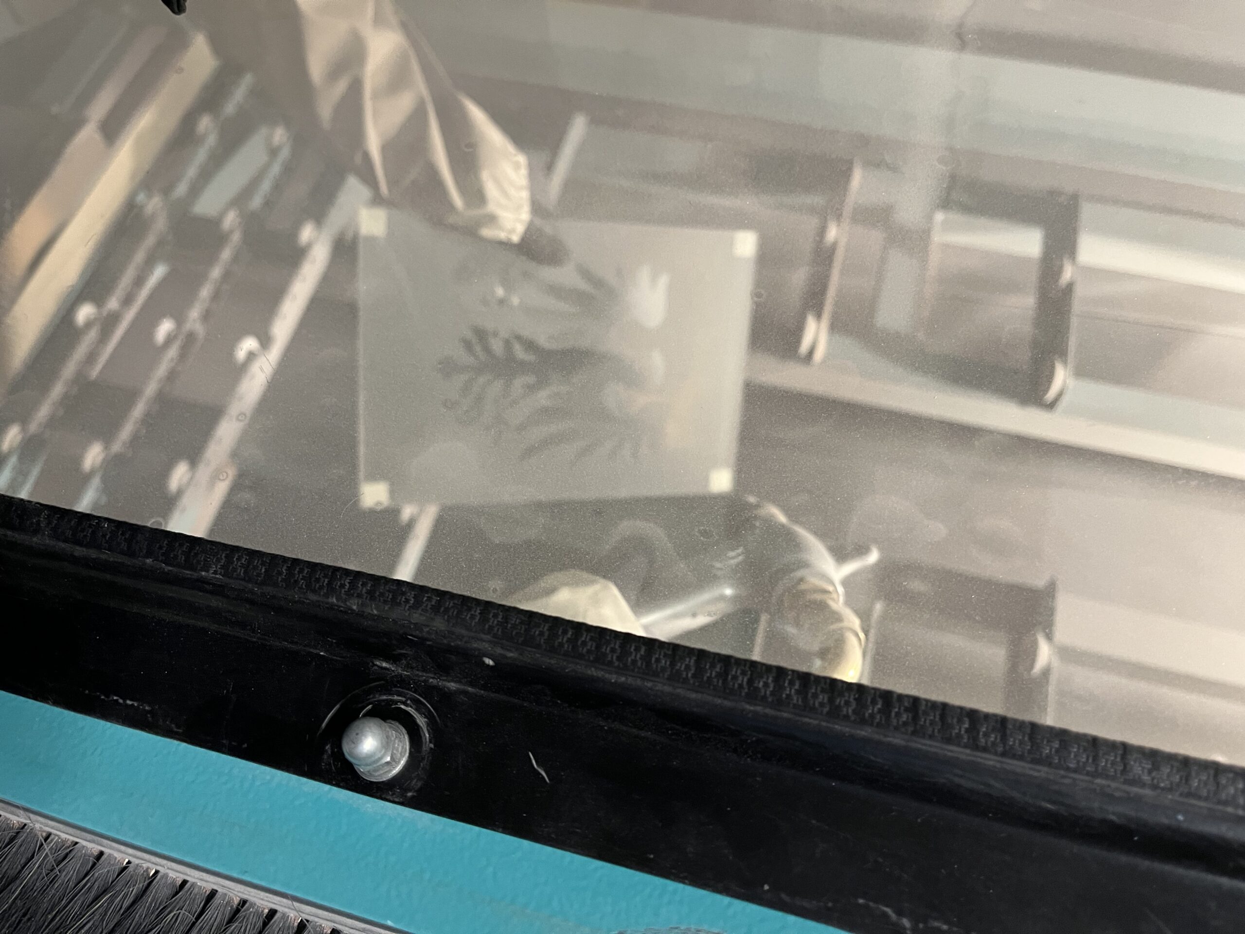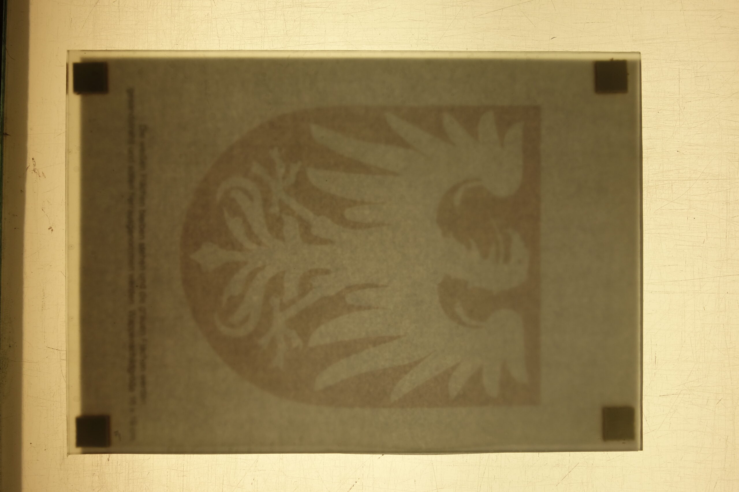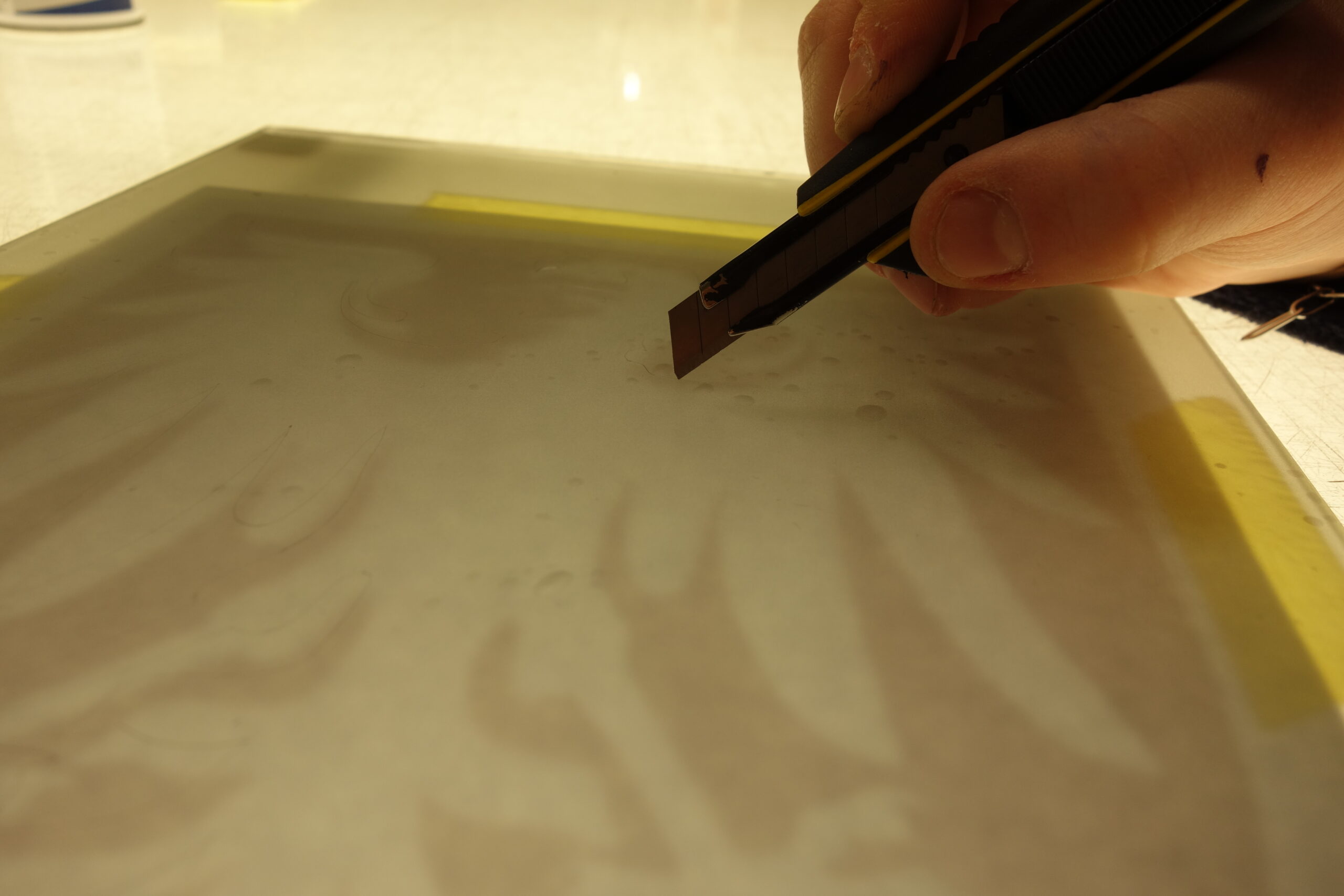 First, I glued the glass with foil and cut out the motif. Then I put on gloves and earmuffs and sandblasted the glass by hand. Finally I removed the foil and cleaned the glass.