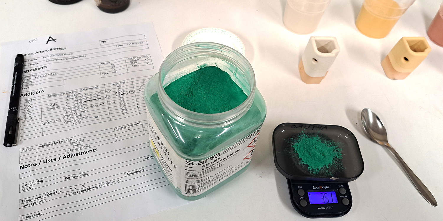 Glaze recipes are widely available through publications and online. Pre-mixed glazes in a diverse range of colours and finishes can be bought ‘’off the shelf’’, however, to a studio ceramicist and contemporary art collectors, the originality of a glaze is a critical part of the work, therefore, it is significantly important for a ceramicist to be able to understand glaze chemistry in order to develop own glazes or alter an acquired collection of recipes suitable for their work.