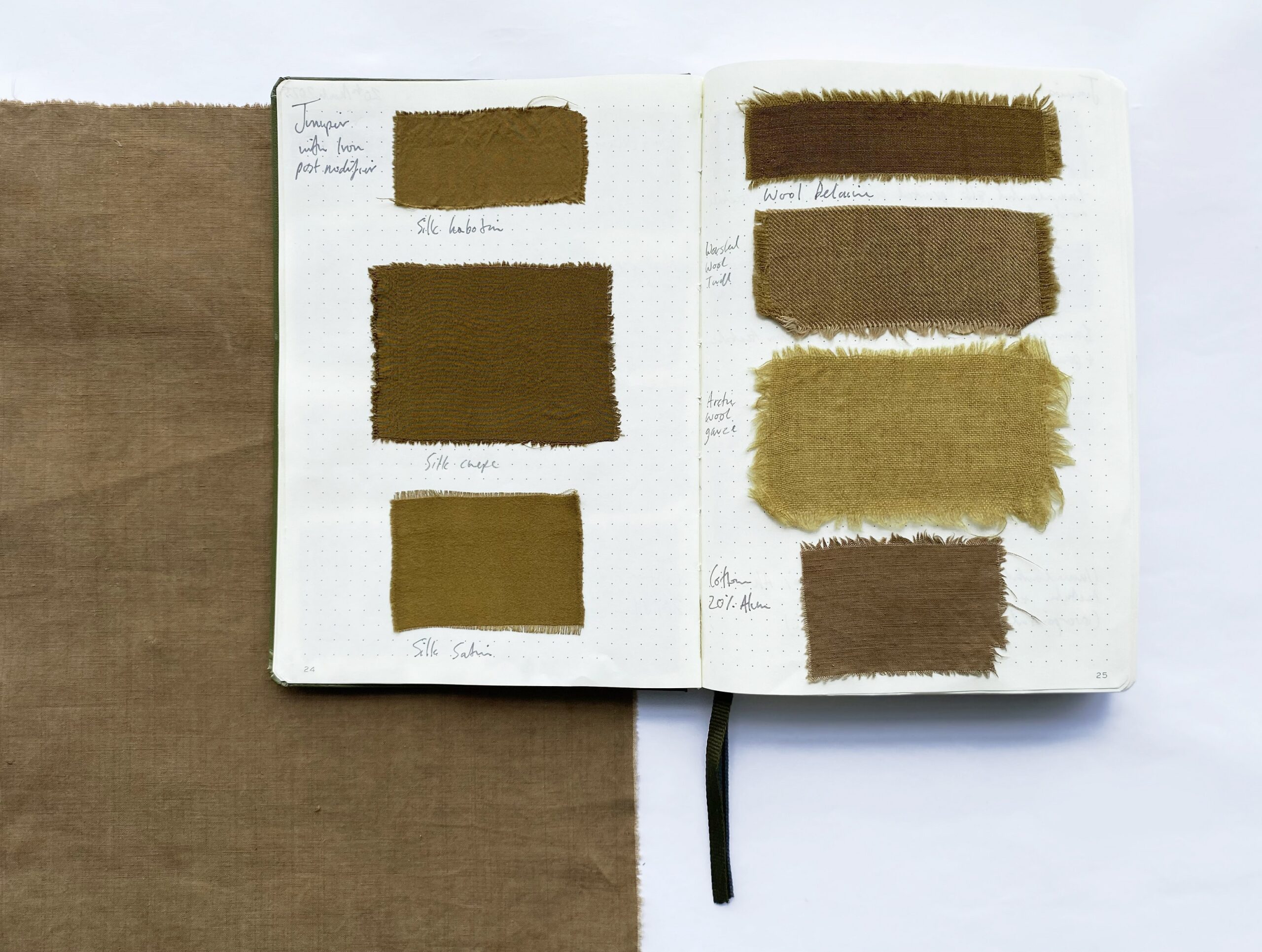 Cellulose fibre -two step pre mordanted with oak gall powder @12% WOF and aluminium potassium sulfate @ 20% WOF.