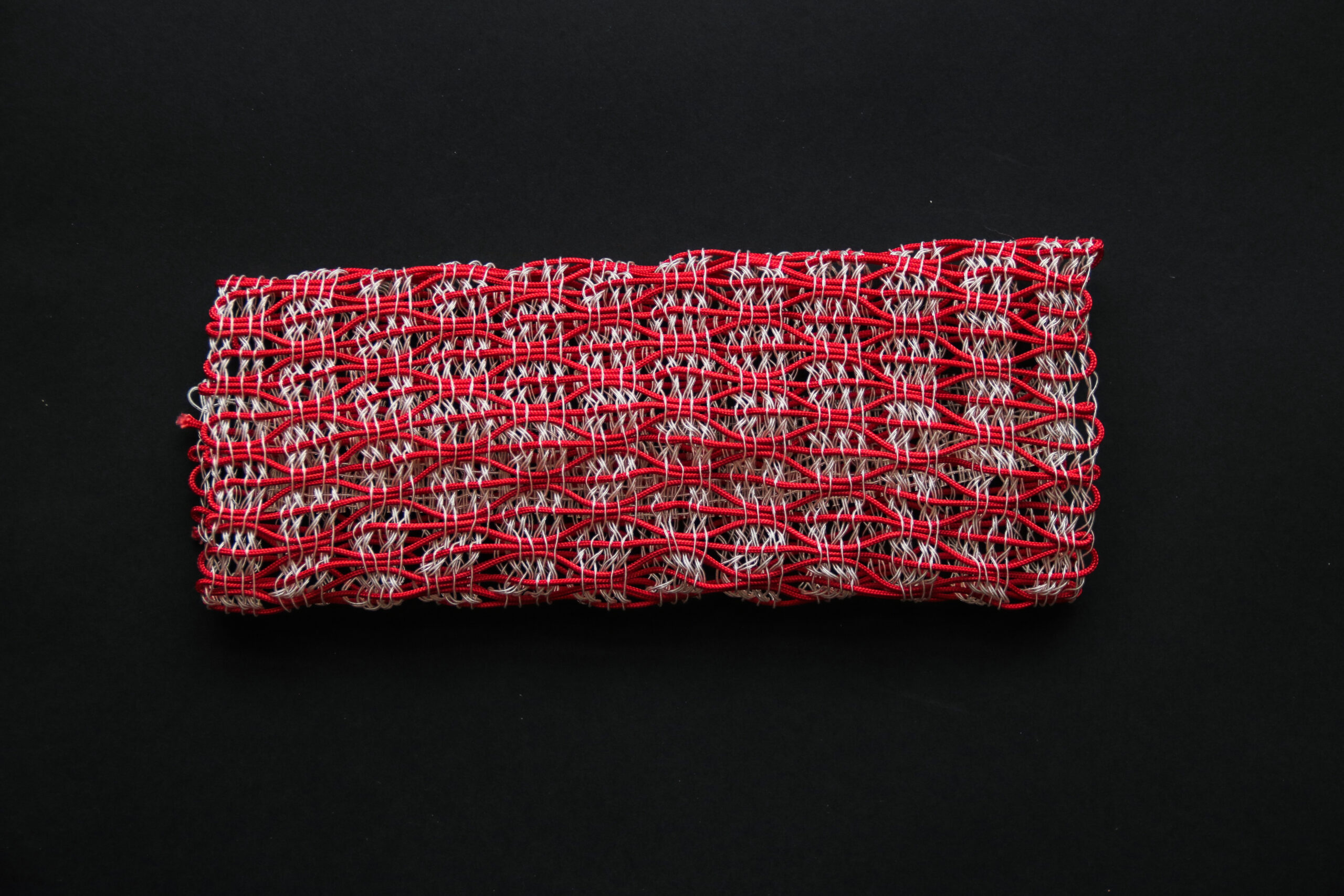 The sample is made at Kolding Design School during a Craft Hub residency in January 2023. With skilled weavers from Scotland, Ireland, Italy and Denmark.