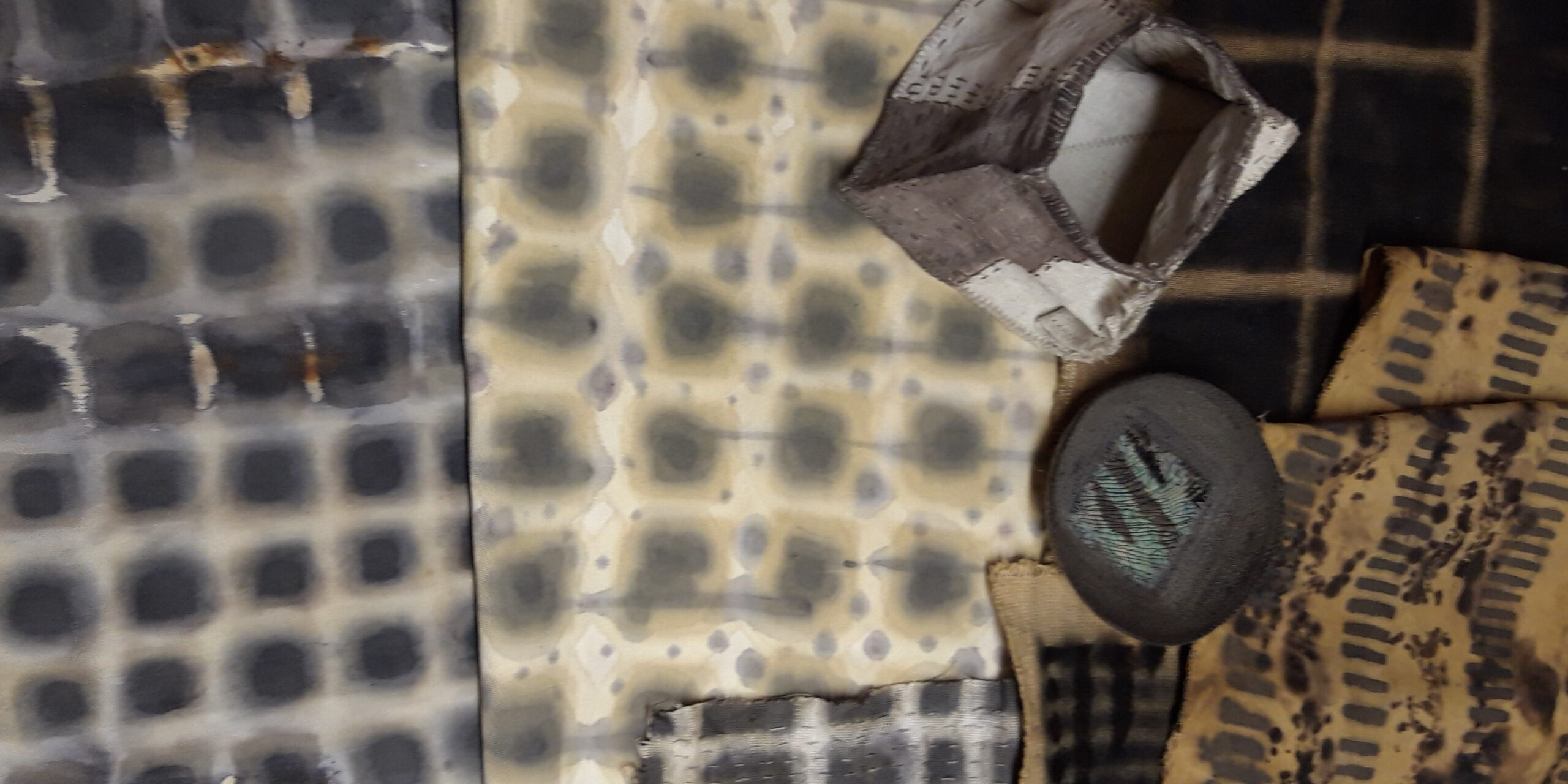 Hand draw/print with prepared mud (fermented iron rich mud)