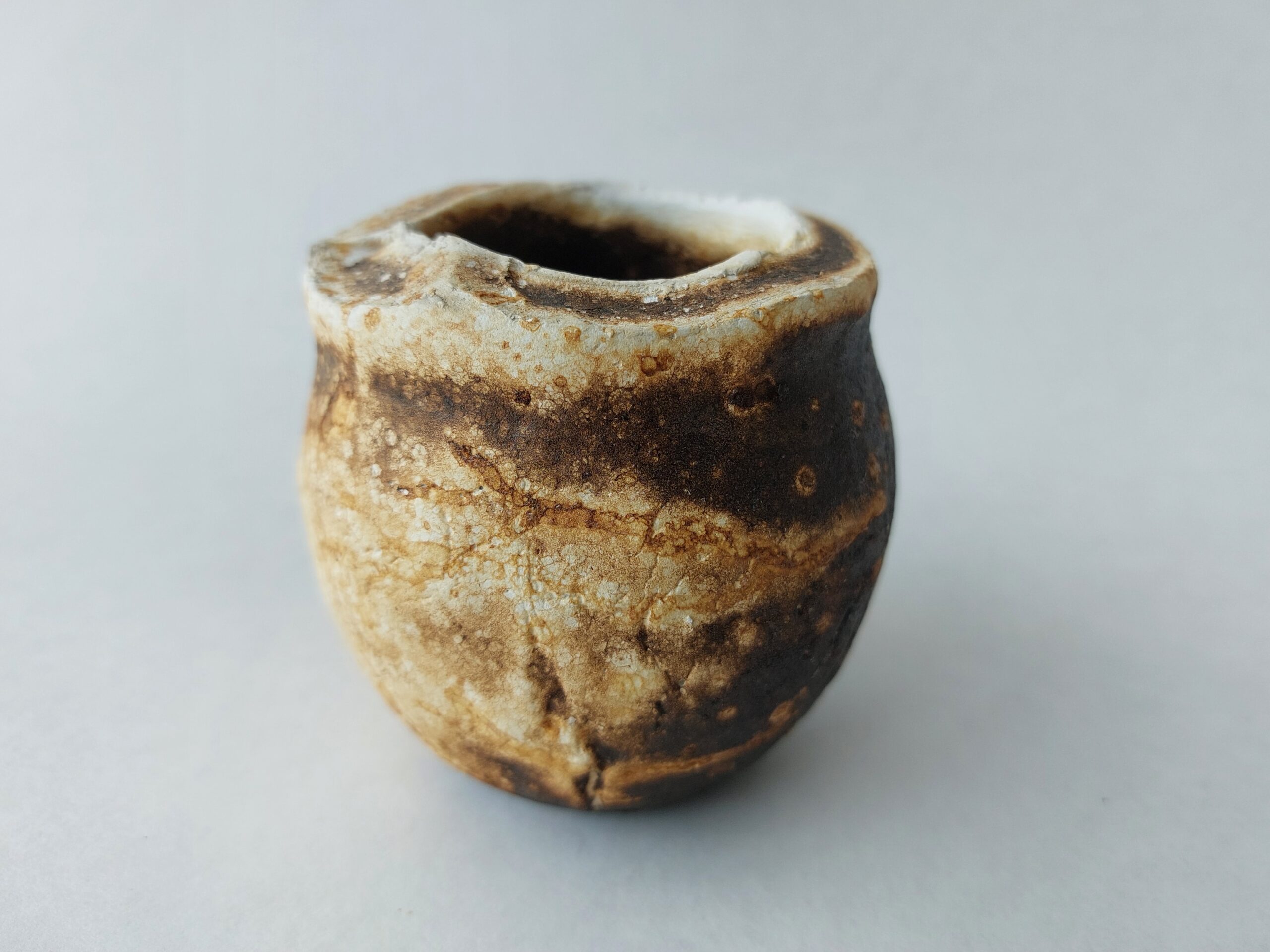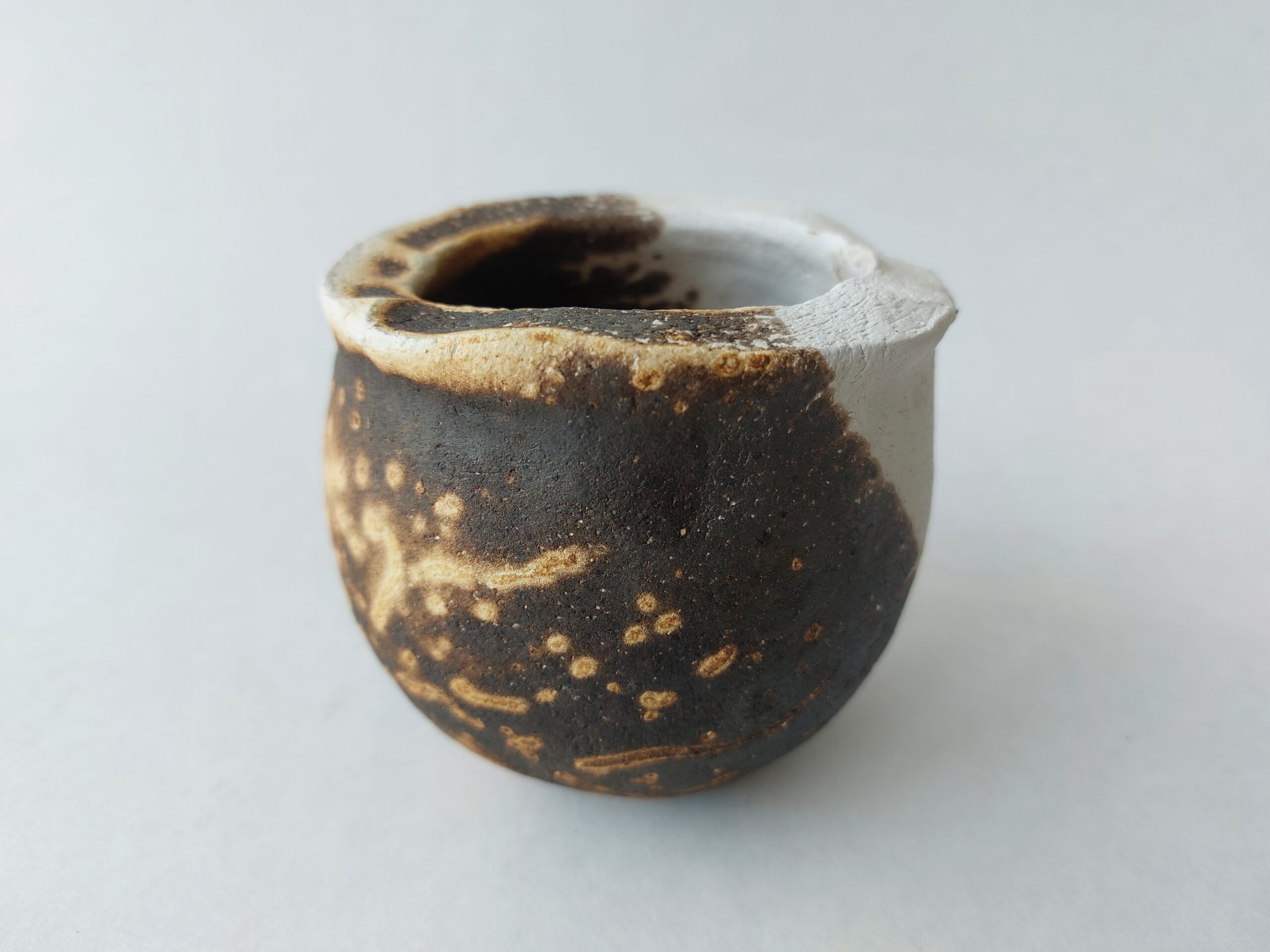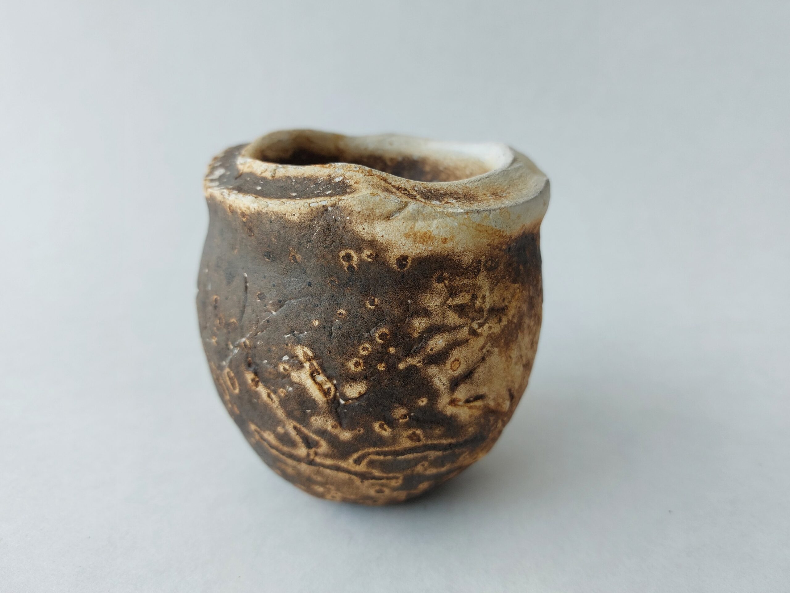 Process: The objects are taken out of a hot kiln (cf. raku) and dipped in a special fermented mixture – sourdough soup (see recipe). When you dip the hot objects into the batter, “bubble patterns” and other effects are transferred to the surface of the ceramic. The objects are cooled directly in water to fix the surface.