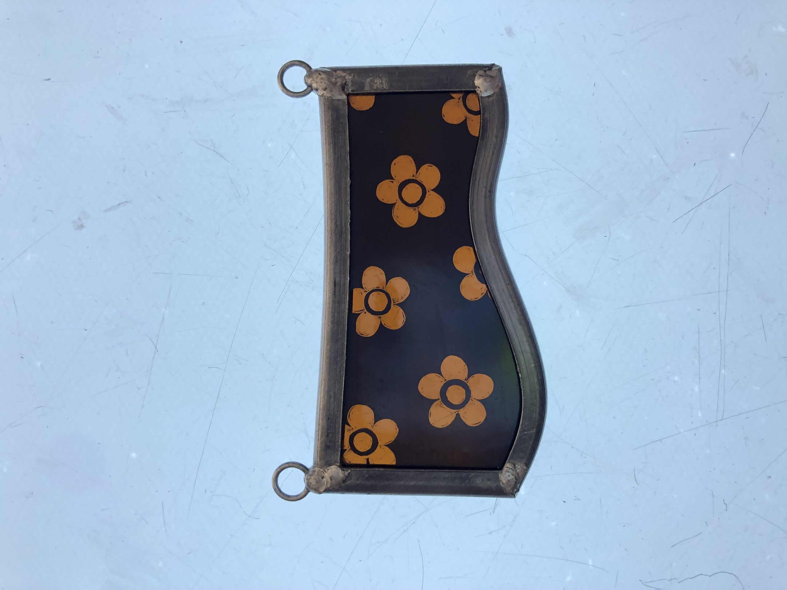 Matt the glass covering the whole glass with brown tone pigment using a badger brush. Dry and clean away pigment using pins , sticks and feathers. Dry. Fired to 500*c held for 10 mins then up to 620.C and off.