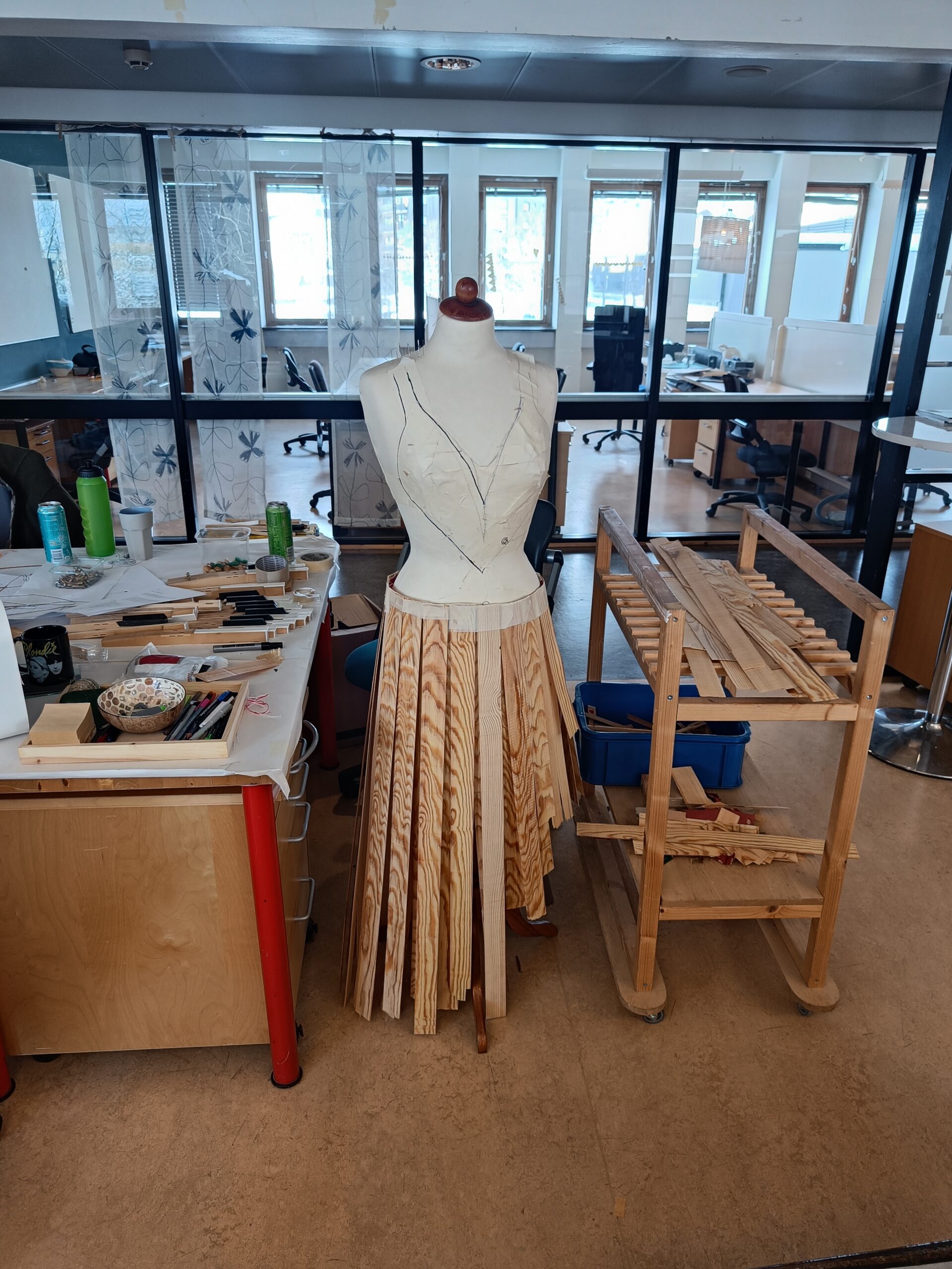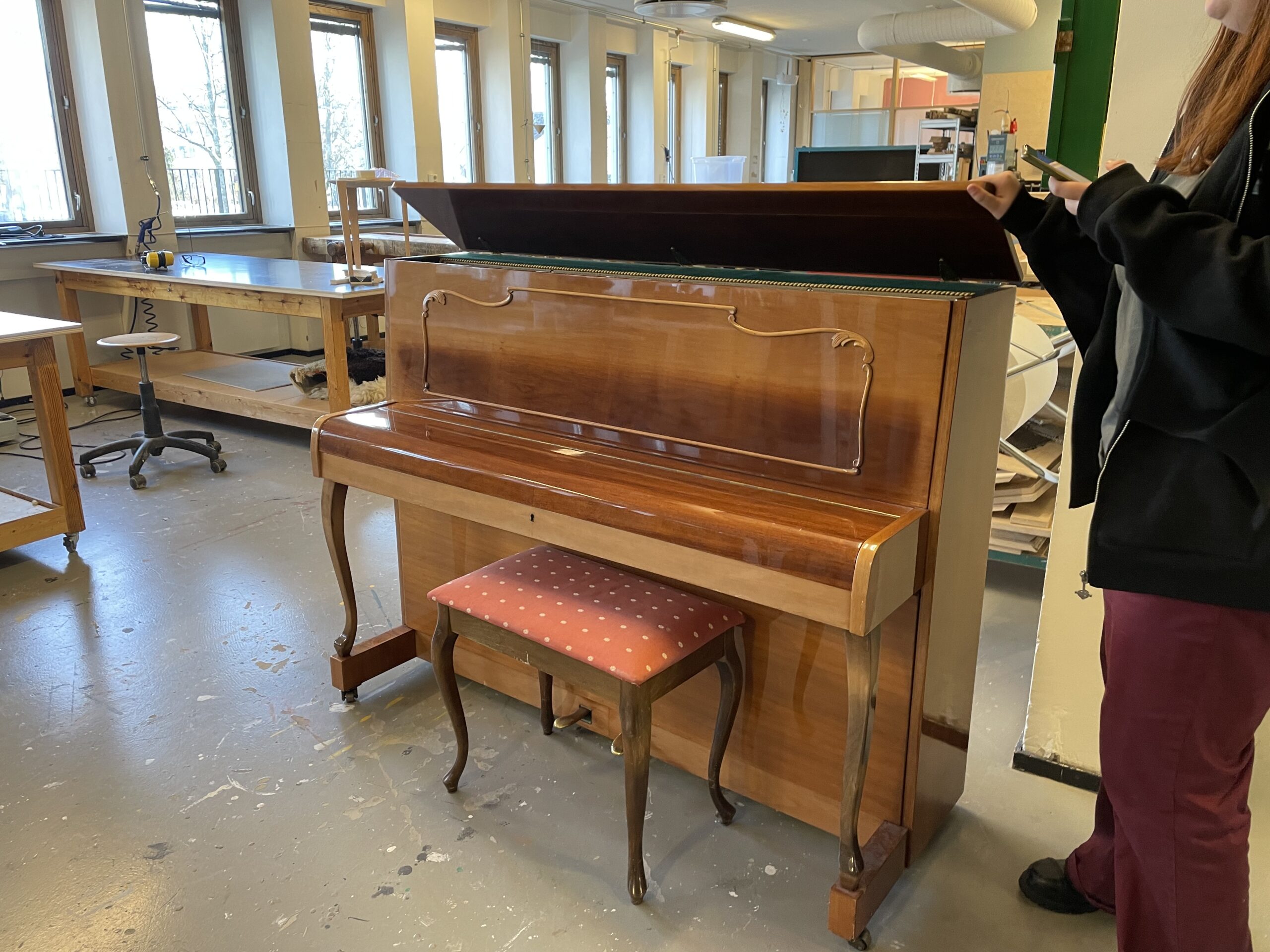 The purpose of this school project was to follow the method called “Following the things“. It is an approach that explores a thing through various cultural dimensions and uses that as inspiration for the creation of new designs. Therefore, we researched vintage products that carry their own history. We found a piano that was nearly discarded, and we took it. To raise awareness for how a product‘s lifespan can be increased in order to reduce the environmental footprint of humankind. We decided to make a dress, even though it was not easy. Clothes are often used as an identity, and it can be a statement or they can show someone’s personality. By creating a dress, we wanted to make people understand and see how much work is put into crafting a piano.