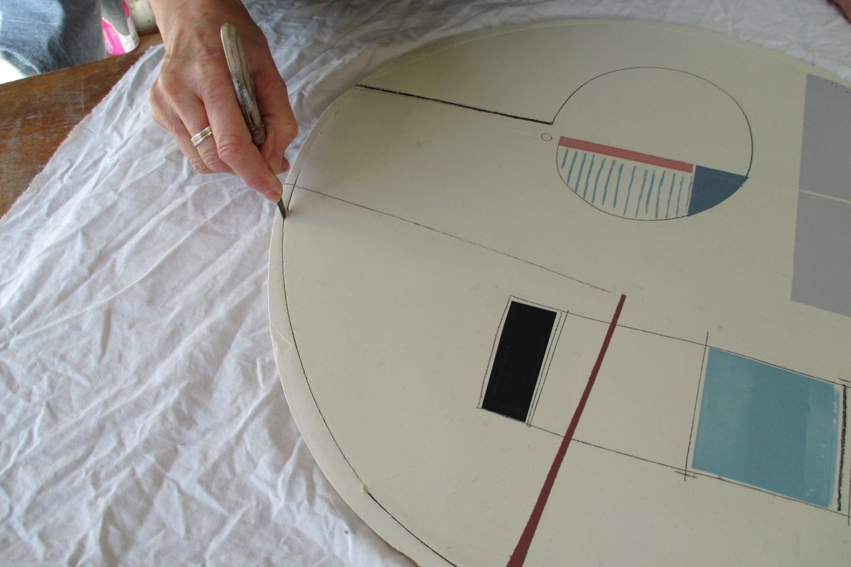 The underglaze colour is placed on a sheet of glass, a well is made in the centre of the colour and a ceramic water-based medium and hardener are added.