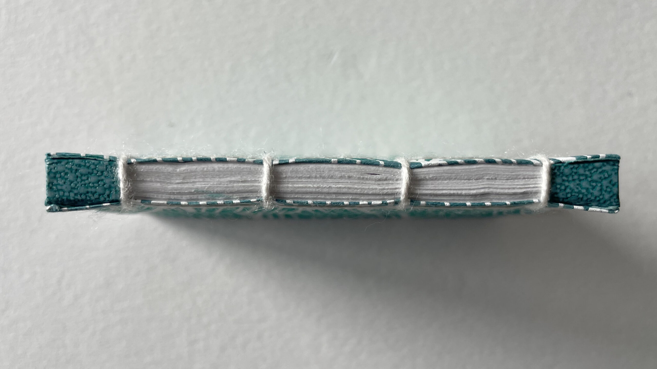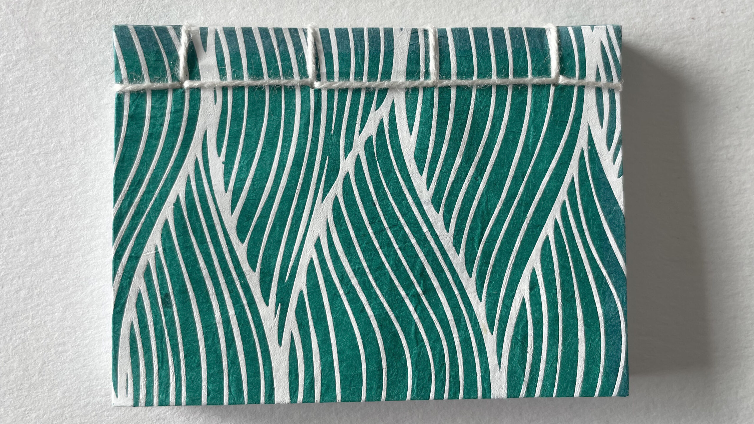 Stab binding is a form of bookbinding used in eastern countries such as Japan, Korea, and China. It is centuries old and still continues in use for some books. Silk is the most commonly used thread. Many books will just have 4 or 5 holes, as shown here, but there are also decorative and modern versions with multiple holes and intricate patterns.