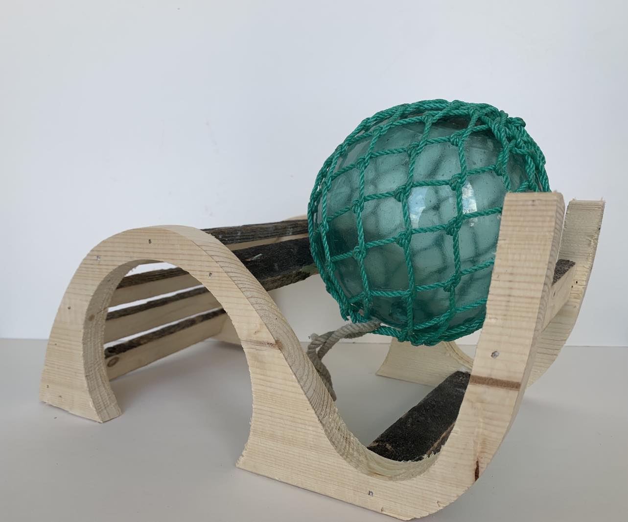 Sea lamp made of an old “float glass” and an old wooden panel from a farm.