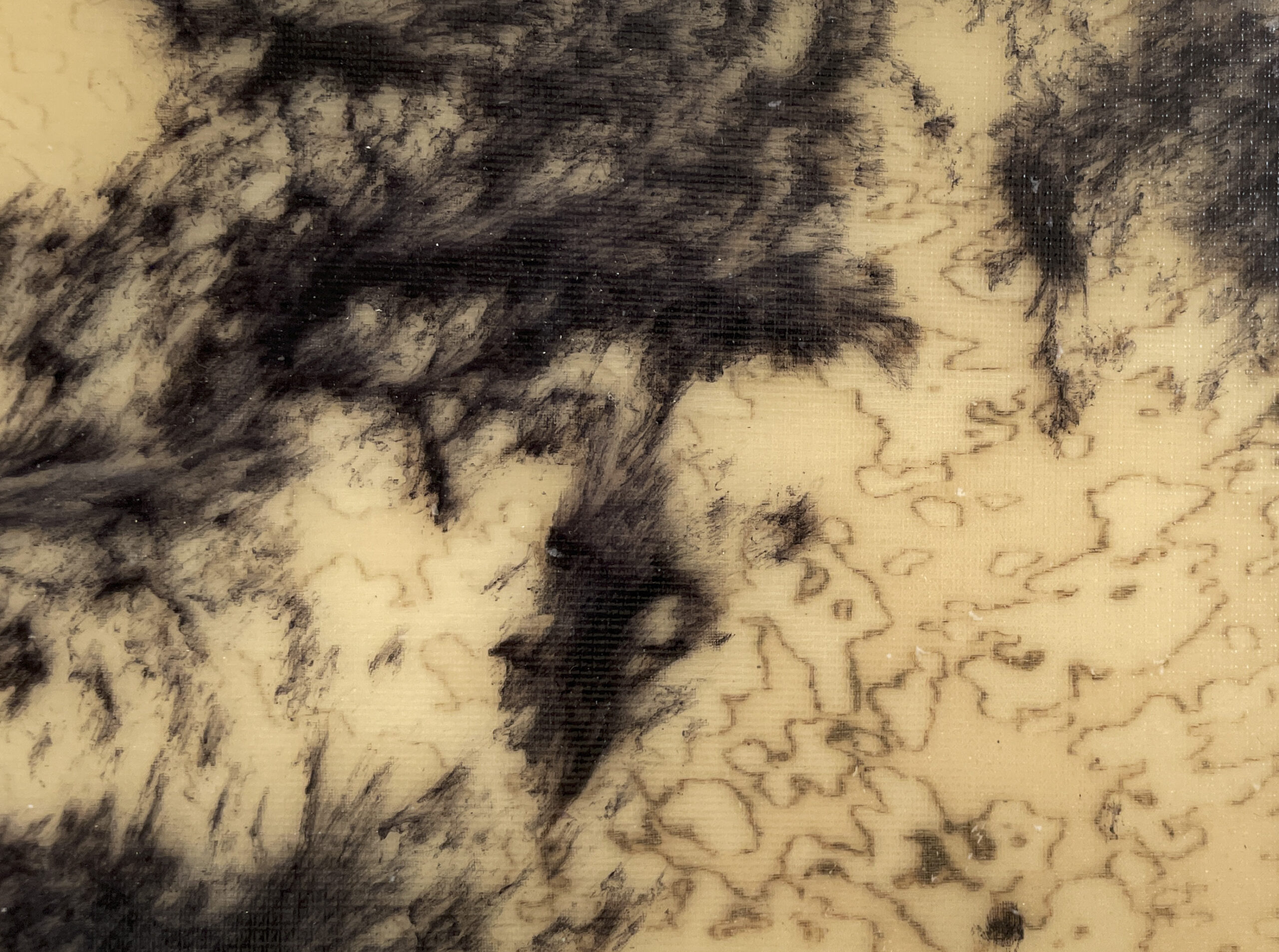 Layer 1: Screen printing applying burnout on silk/viscose satin fabric.