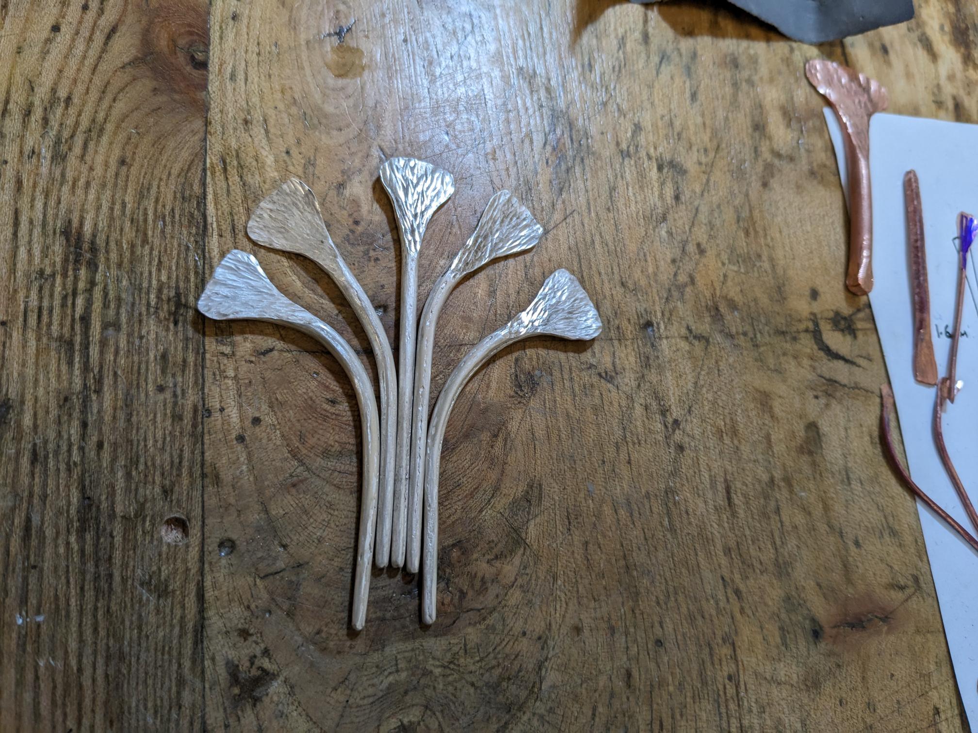 Experimental material outcomes produced by a novice participant during an introductory workshop focusing on hammer forging.