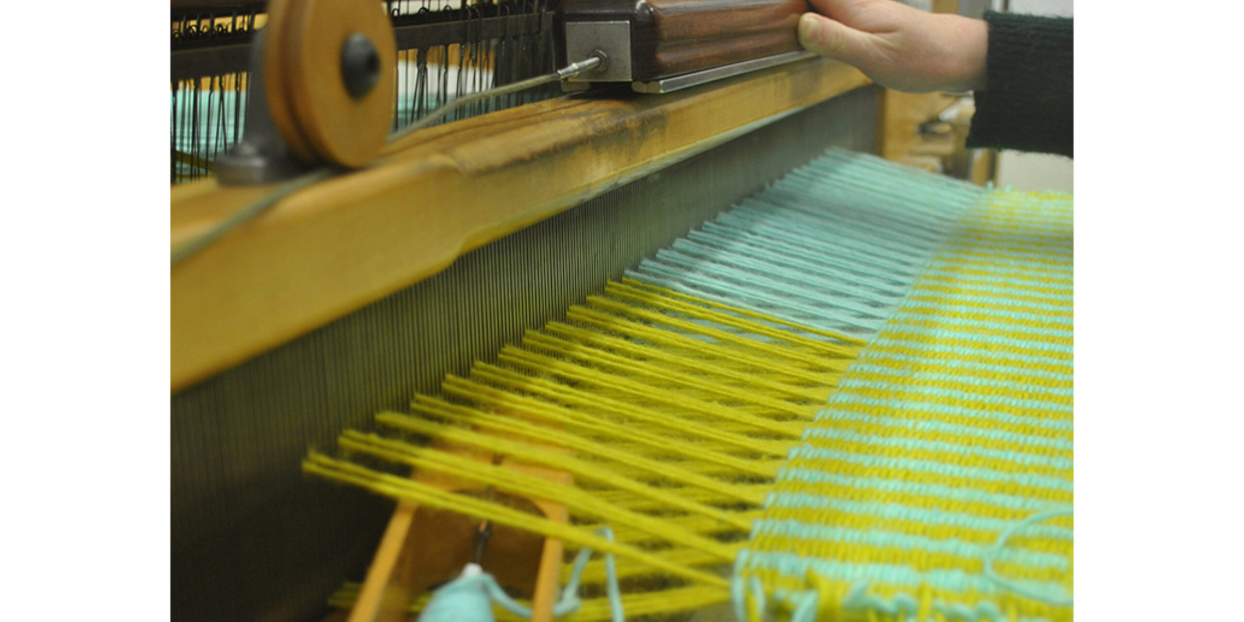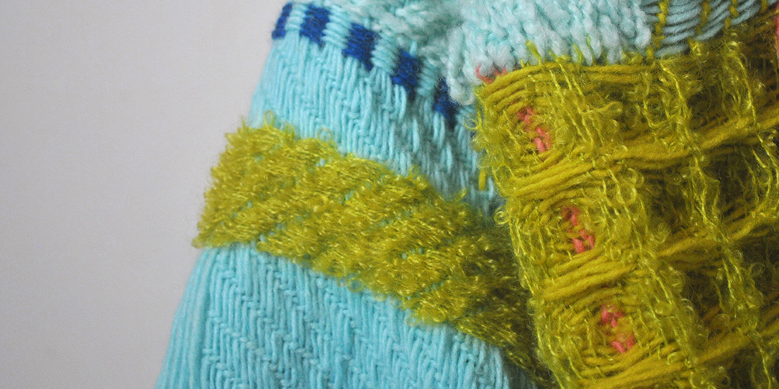 Created on AVL Dobby handloom using twills, supplementary warps, all hand-dyed wools using acid dyes