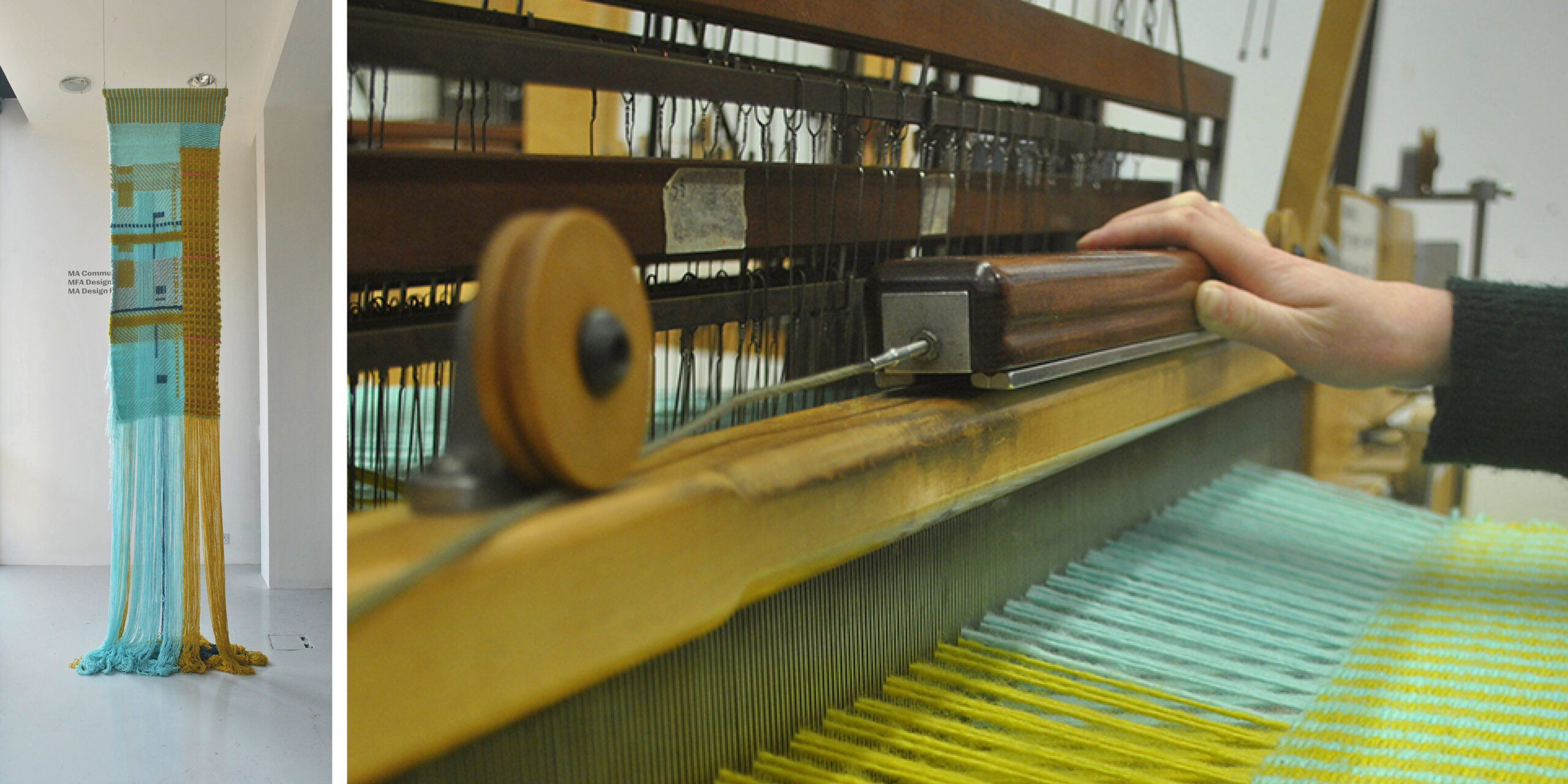 1,7 twills (+ inverse) 232 ends, point and straight draft, tapestry techniques, Donegal Yarns Kilcarra Tweed warp (Ecru and Ardarra).