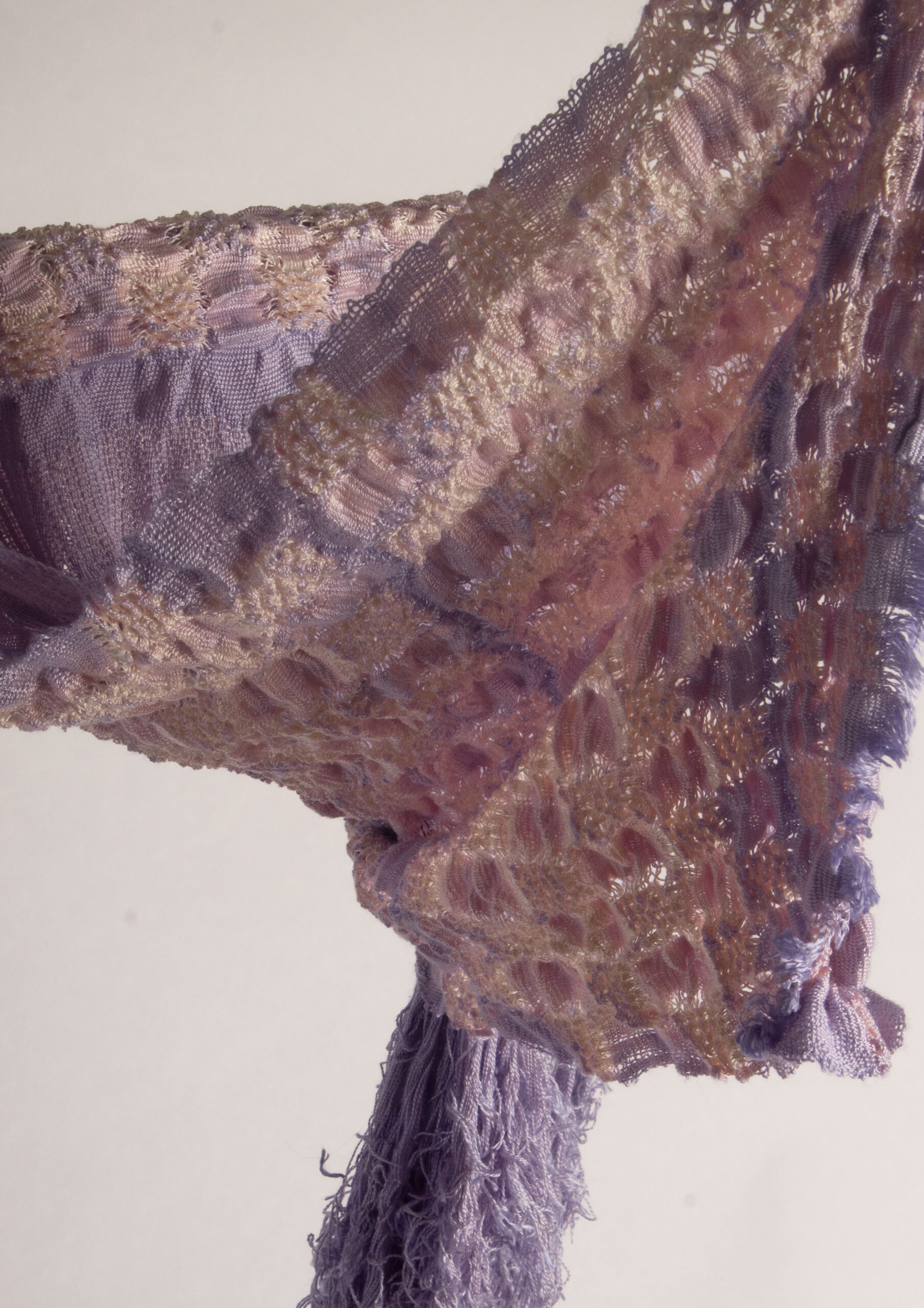 Silk yarns with supplementary cord warp are interwoven into a square pattern when weaving plain weave