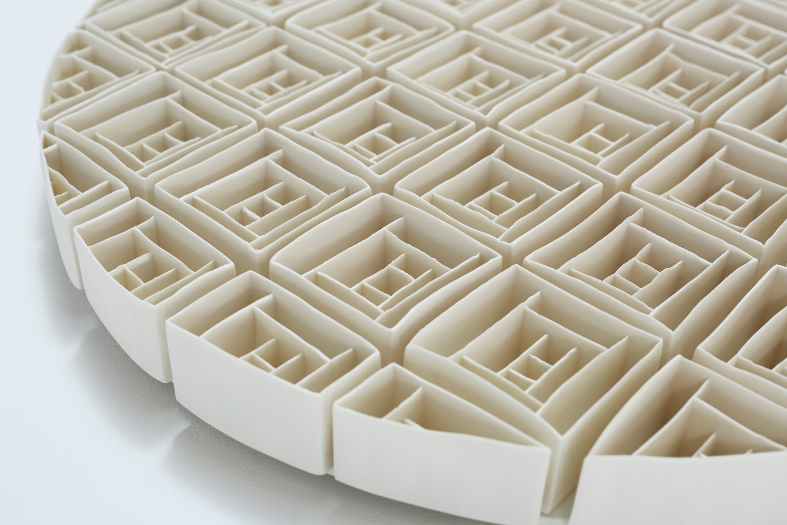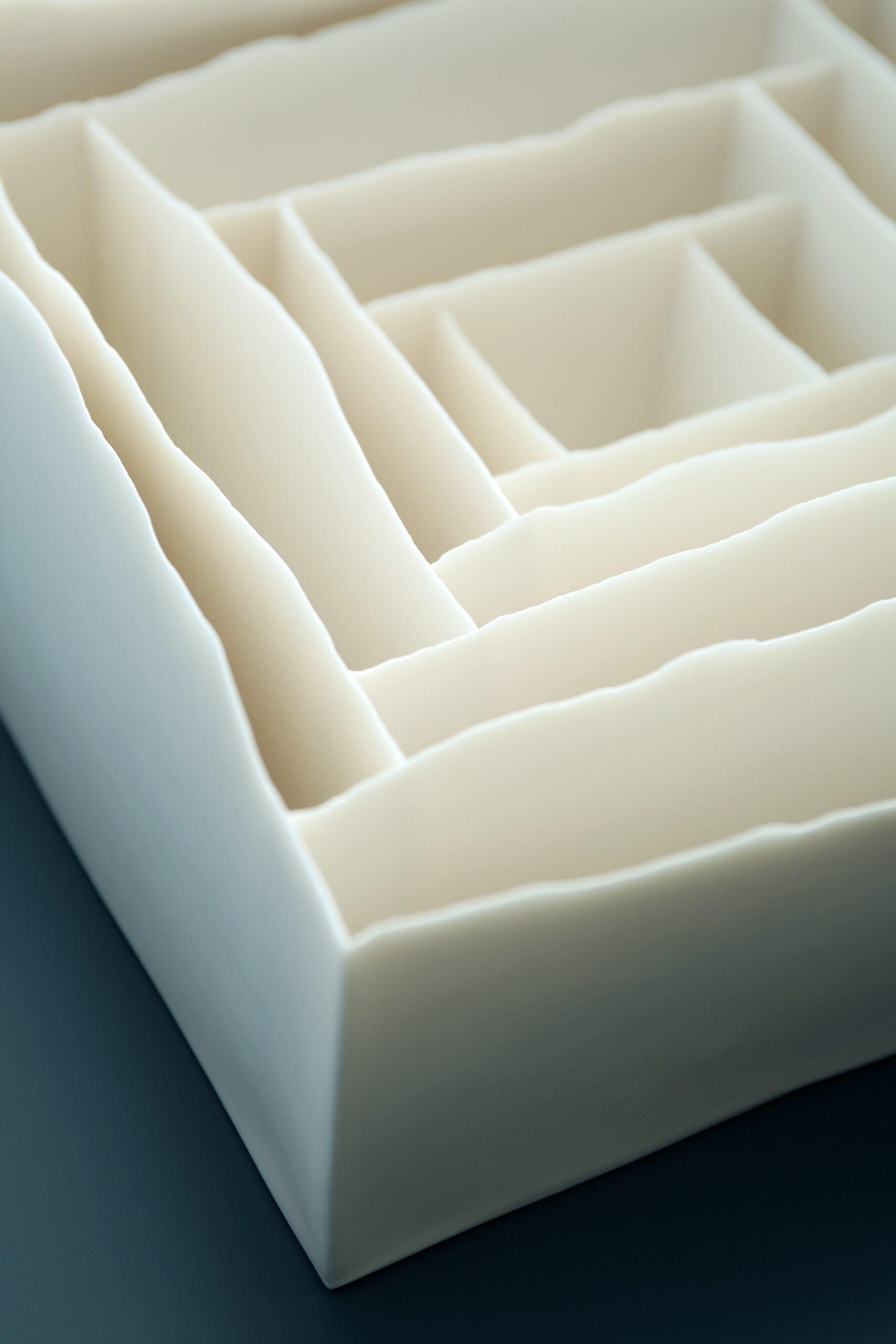 Finding Beauty is a miniature porcelain cavernous structure that draws the viewers gaze into the centre. The effect of light coming through the sculptural interior is dazzling.The laborious techniques I use to deliver this piece are focused on showcasing and highlighting the beauty of the material. I make miniscule environments- abstracted rooms, cities and houses. My work represents a relationship with space and how it shapes us, both physically and emotionally. It also investigates the interrelationships between us and the buildings we inhabit. The structures I make connect these ideas and in doing so, they reflect on the human condition. |
