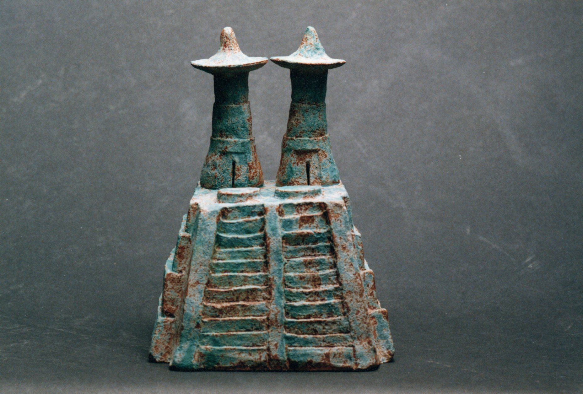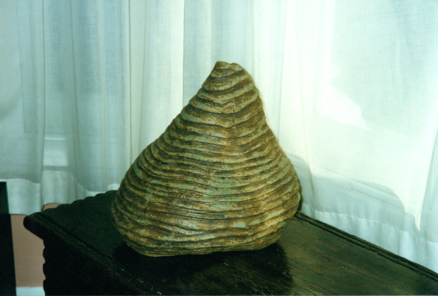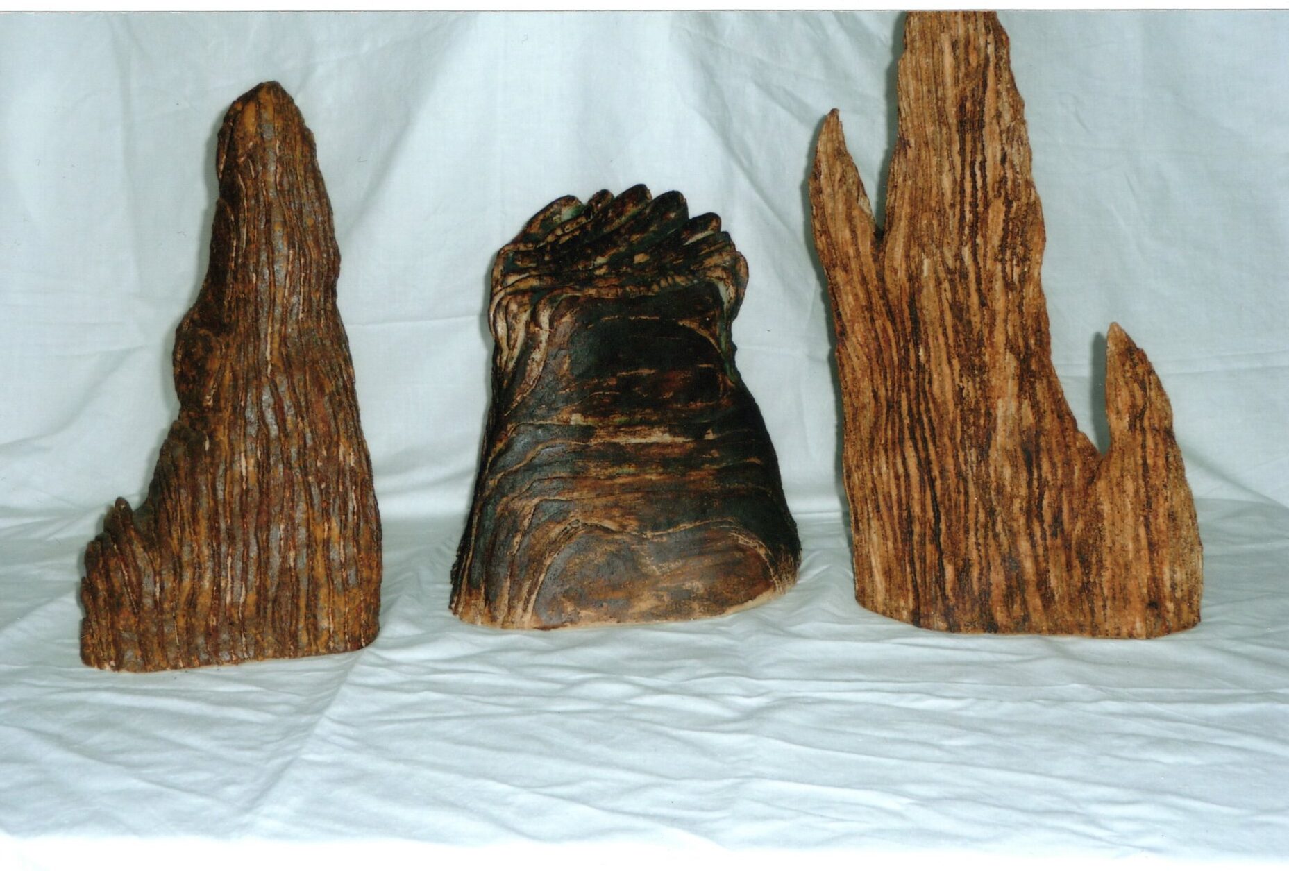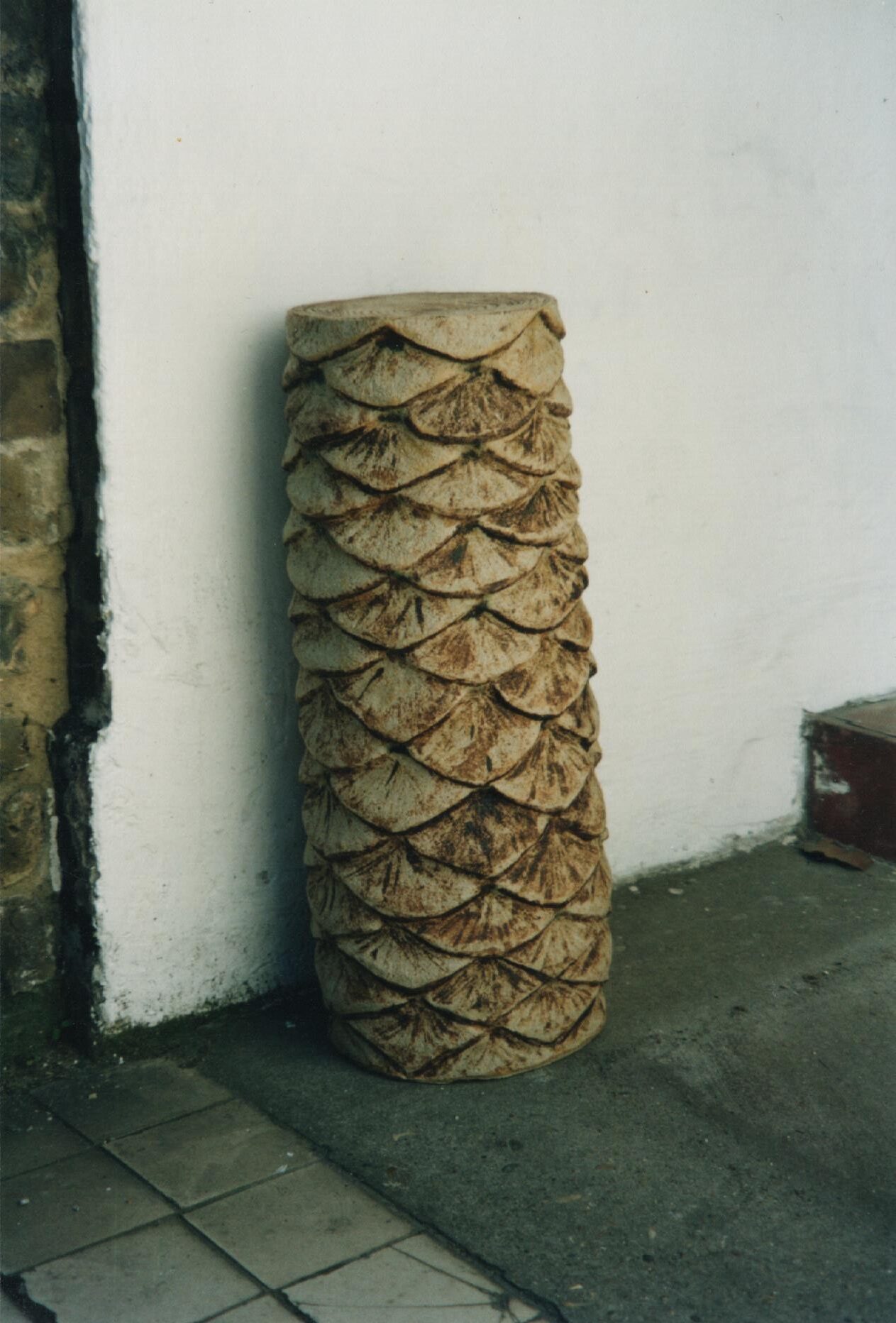 Margaret Rich was trained as a psychiatrist and worked in various hospitals in the UK, mainly in association with St Bartholomew’s Hospital. In the late 1990 she retired and took up drawing at Adult Education classes on Holmes Road in Kentish Town.  Margaret spent a year studying drawing and from there, she was recommended to try ceramics, which was clearly her metier. When the Adult Education Centre closed, she started attending classes at the Working Men’s Collage and spent two years working towards a City and Guild certificate in ceramics. Margaret set up a studio at her home in Kentish Town, this is where she started making her tree trunks. She would take her work to her friend’s house, CK Hughes, to be fired.