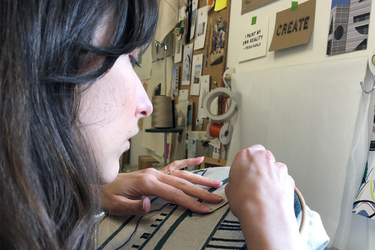 | I’m a textile designer specialising in print design and embroidery. I studied print design and would say it is my first love. As well as working with screen printing I also work in digital printing and contemporary embroidery. The first craft I remember doing was a cross-stitch design when I was very little. Being creative has always been something I have pulled towards. My favourite printing technique is screen printing with an exposed pattern on a screen and my favourite stitching technique is couching. |