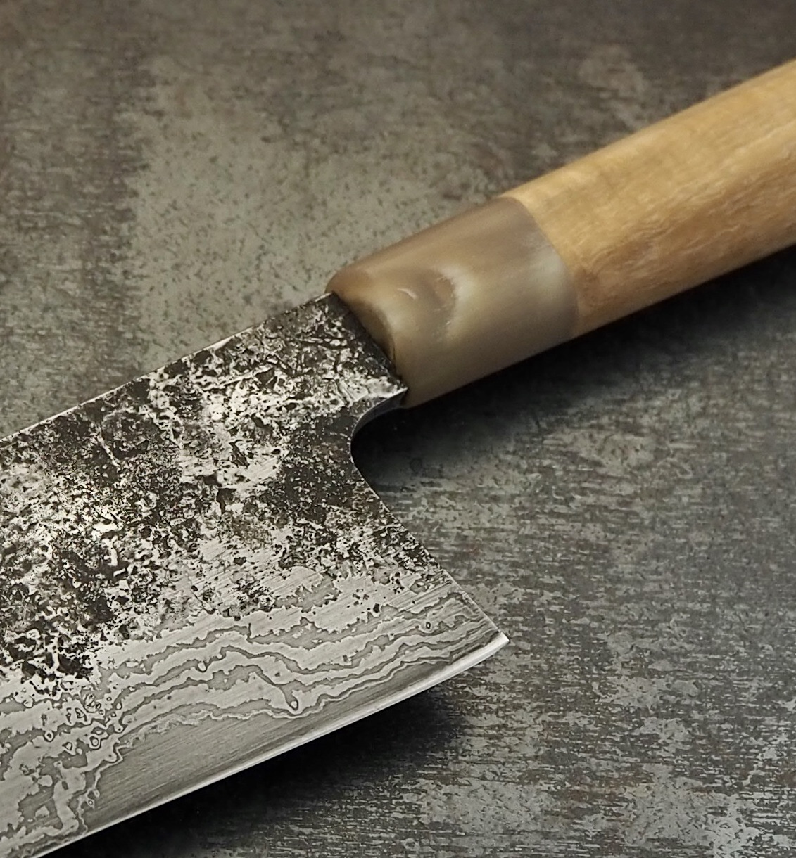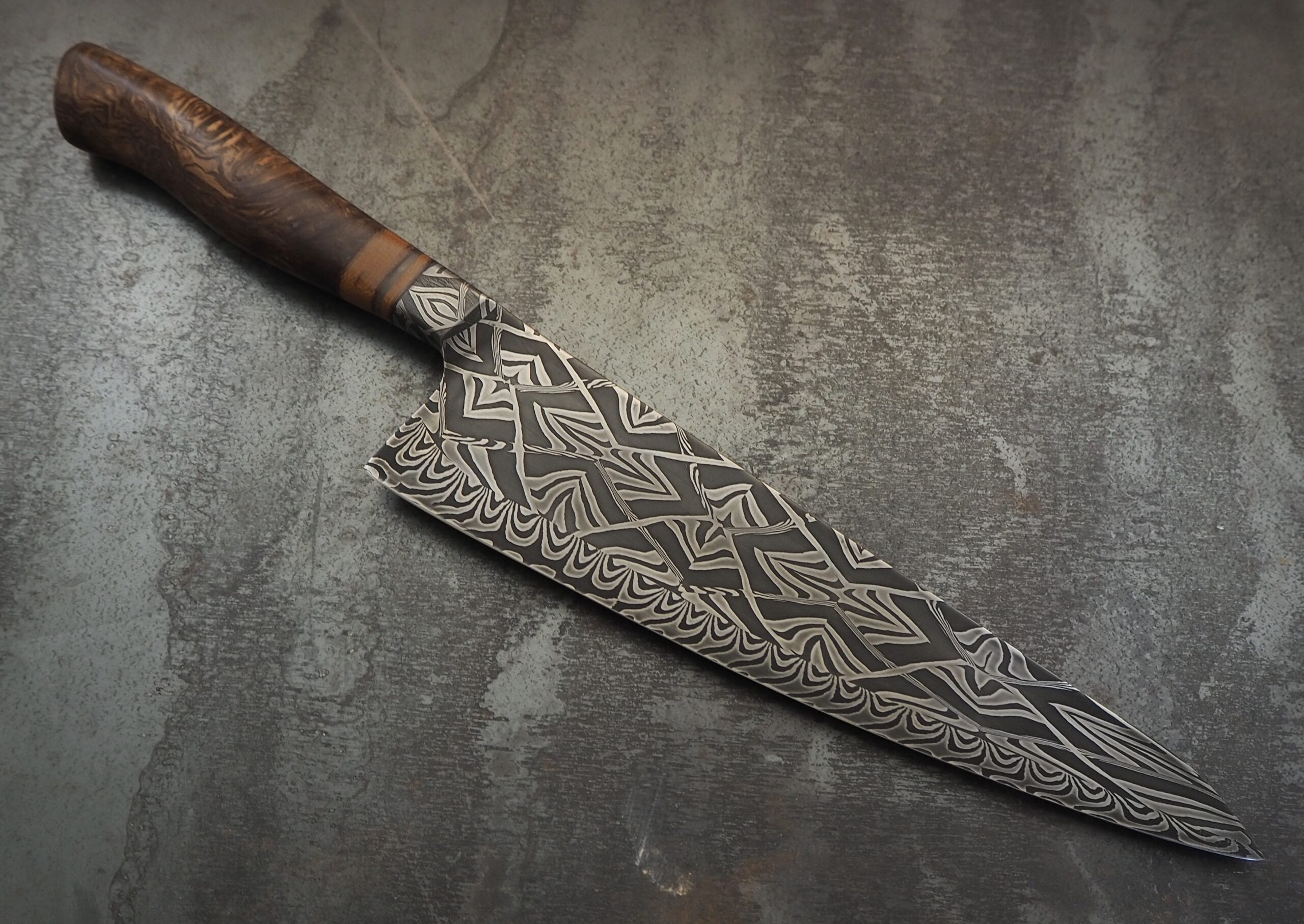 I work predominantly in metal and wood - forge-welding my own steel billets for blades using salvaged and reclaimed materials sandwiching high carbon steels for the finest quality culinary knives.