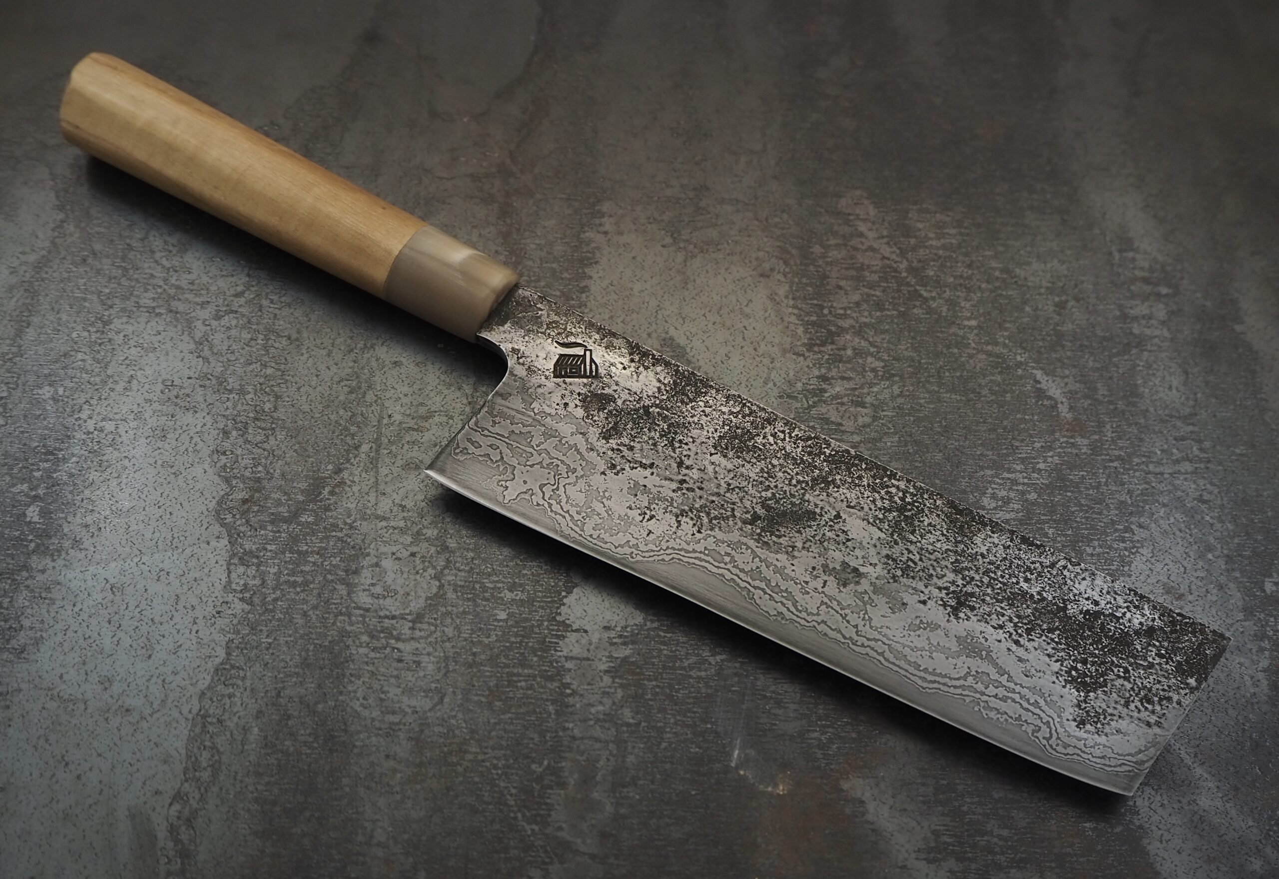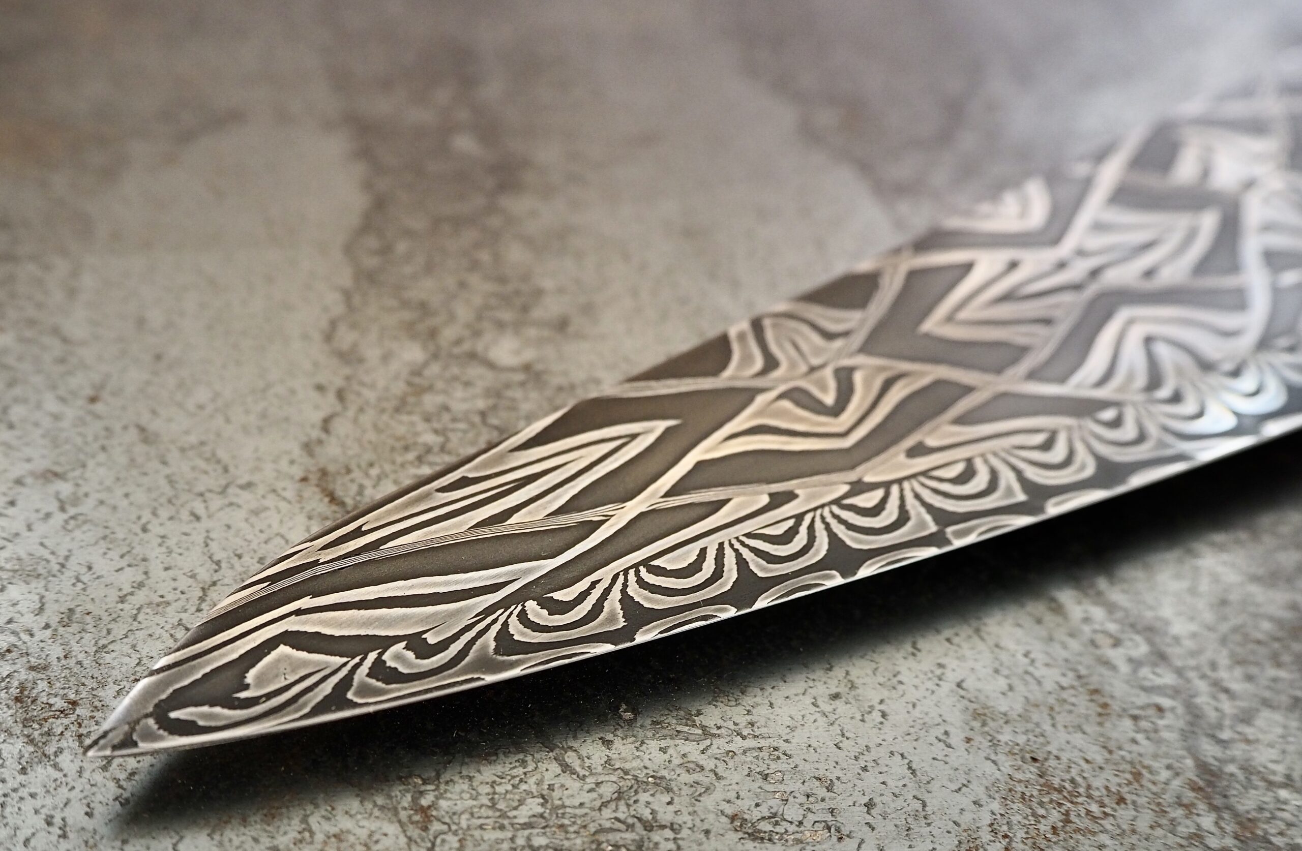 Techniques used include mechanical power hammer forging, hand hammer forging, steel lamination and forge-welding, grinding, sanding, polishing and acid etching.