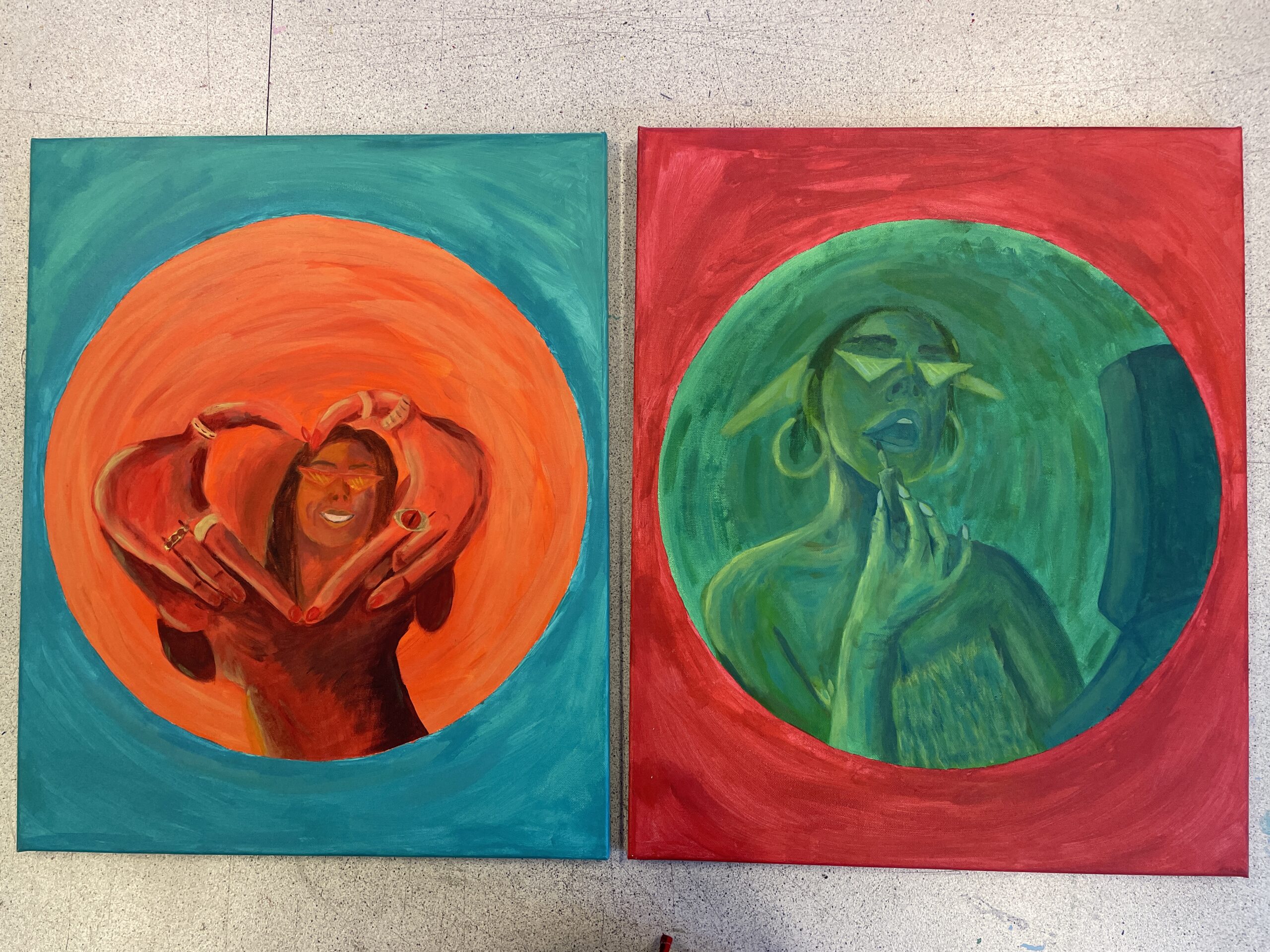 I am a student in Oslo who has worked with art and design for the past few years using materials like acrylic paint, textiles, paper mache, linoleum cut and many more. I love working with different techniques and patterns to make a bunch of different objects, paintings and installations.